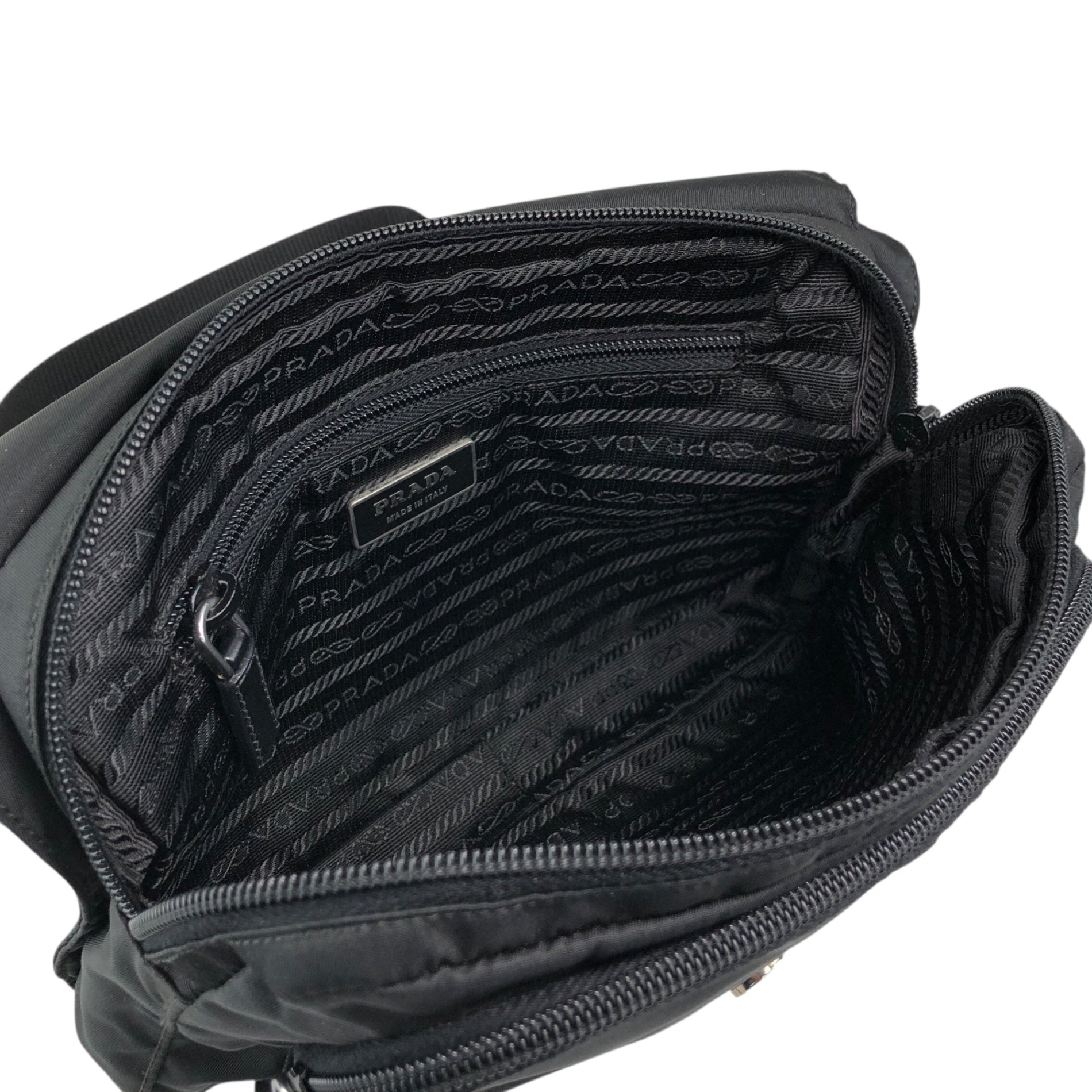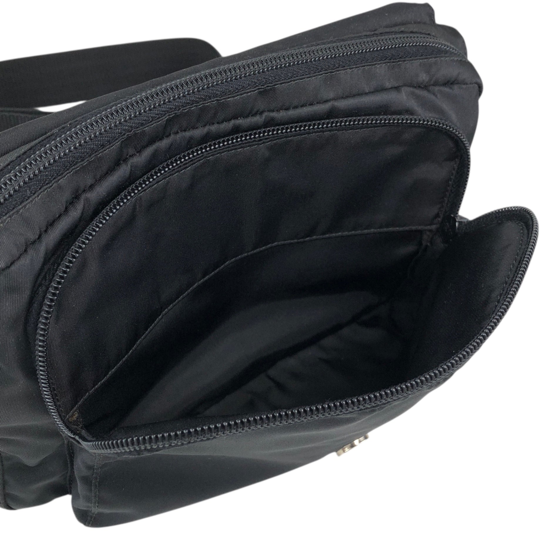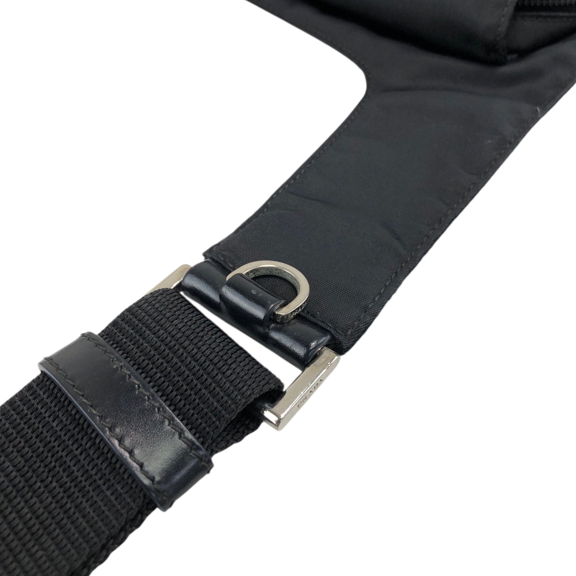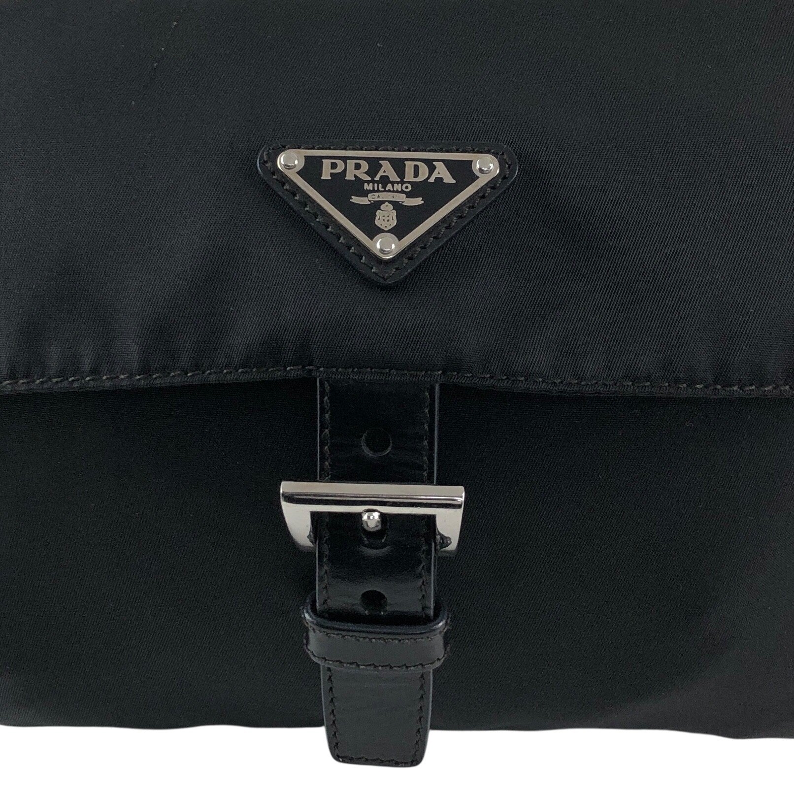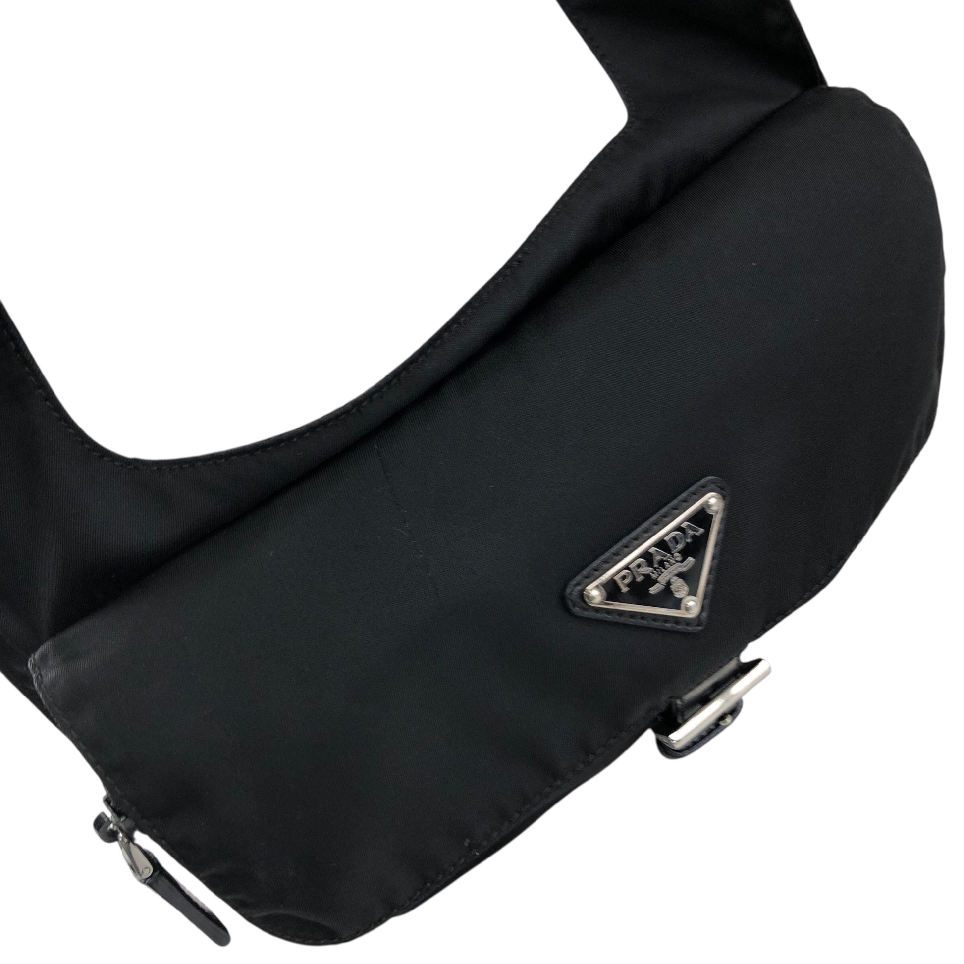 PRADA Tessuto Triangle Logo Front Buckle Shoulder bag Black Vintage mkij8a