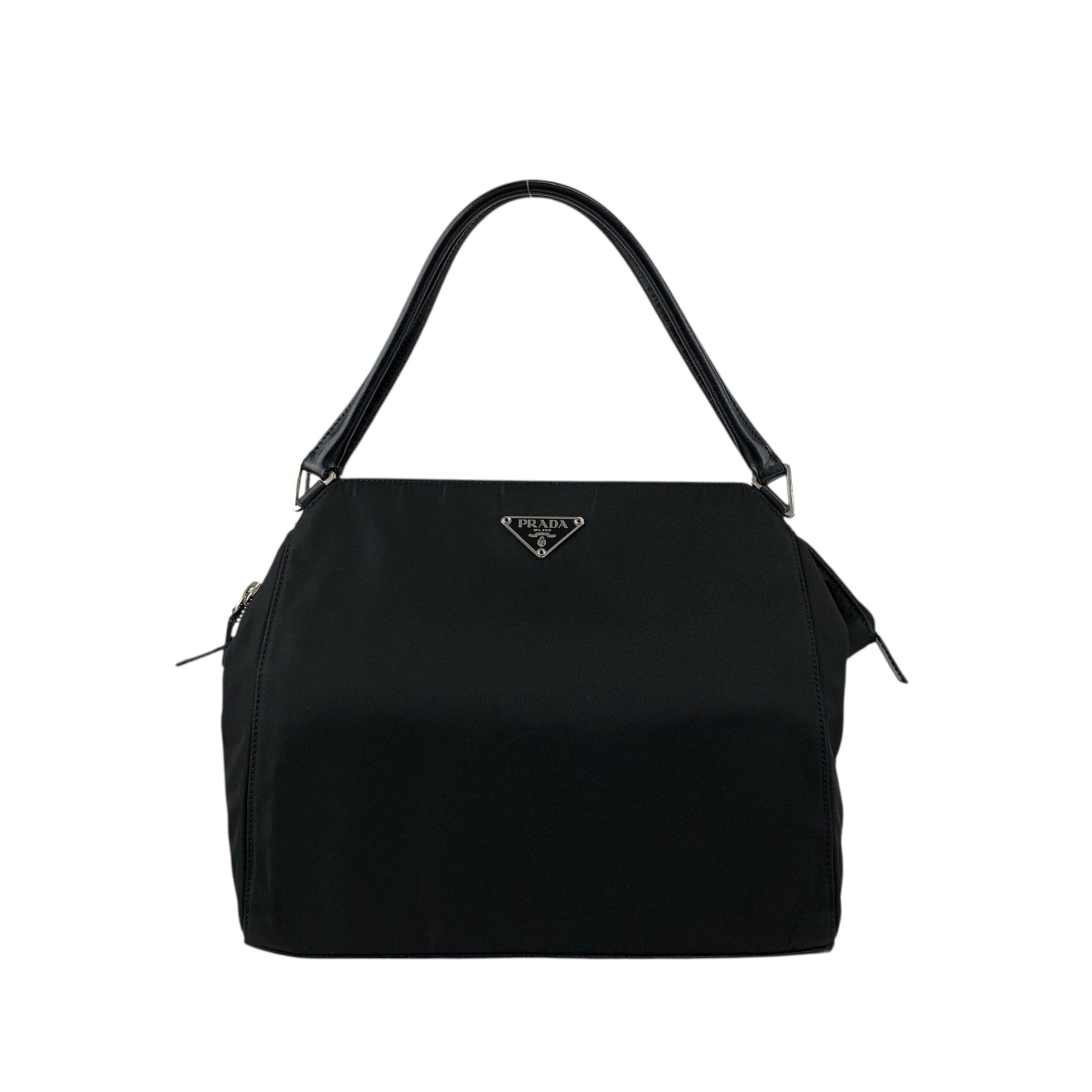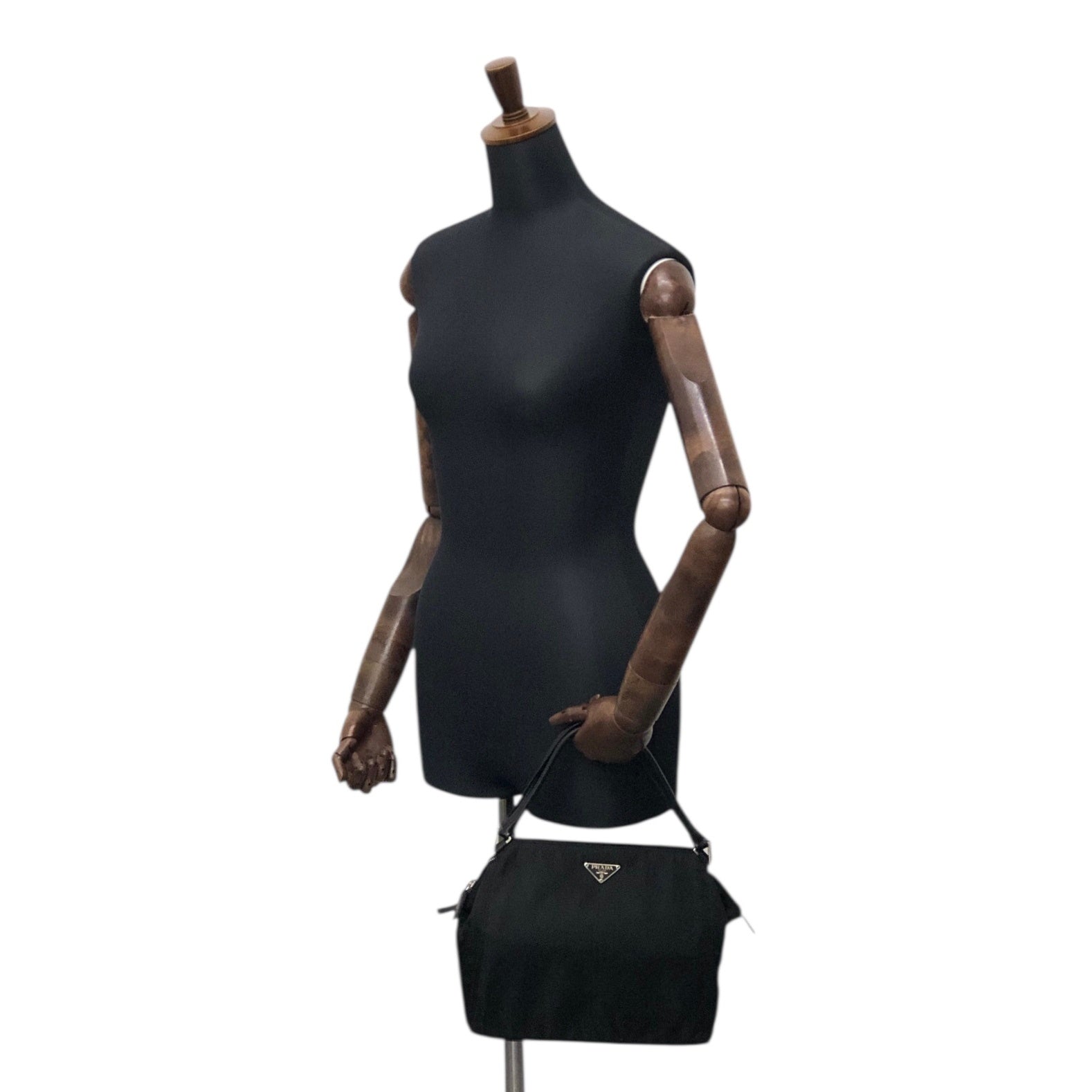 PRADA Tessuto Triangle Logo Handbag Black Vintage 4hjz48