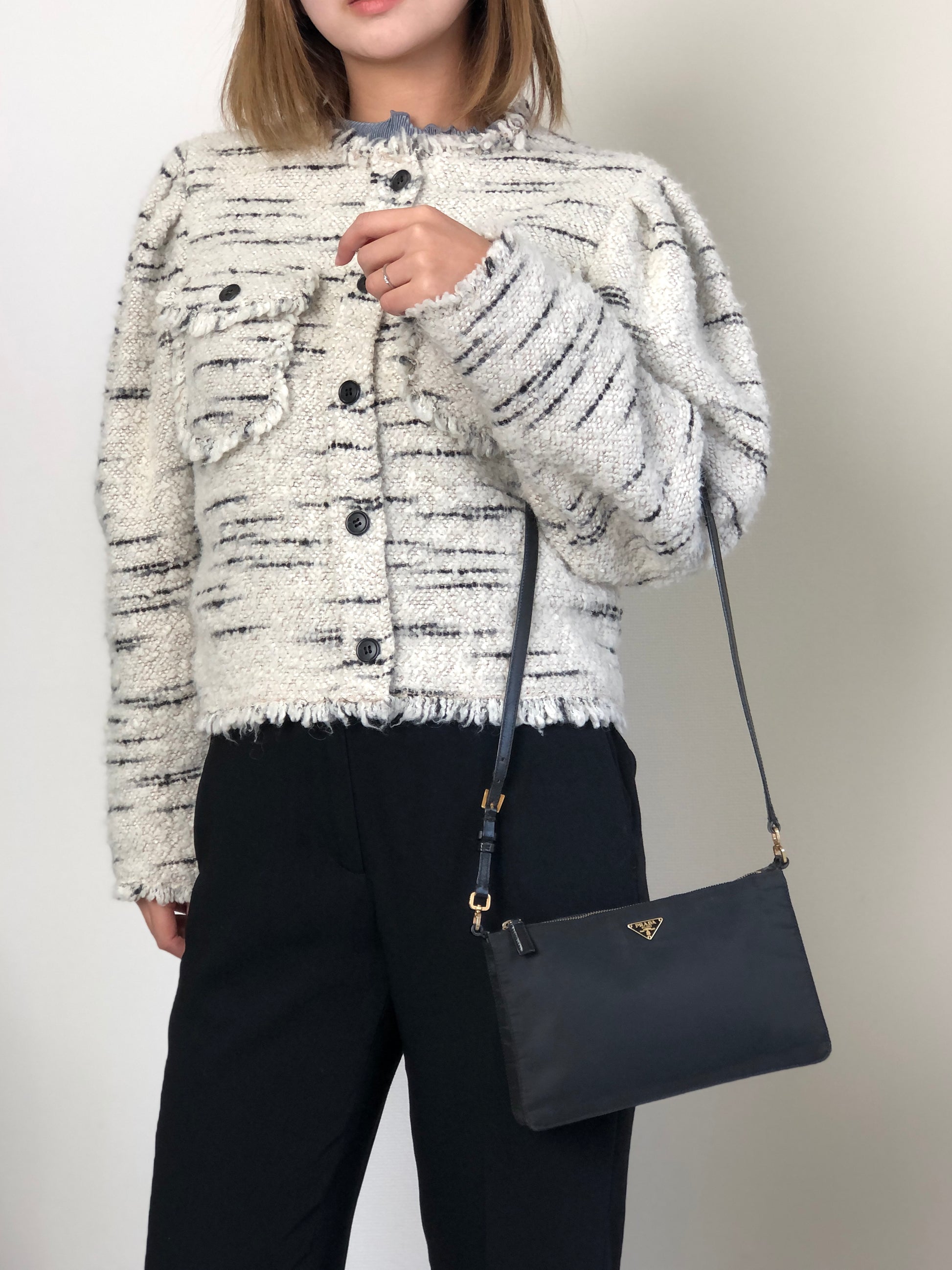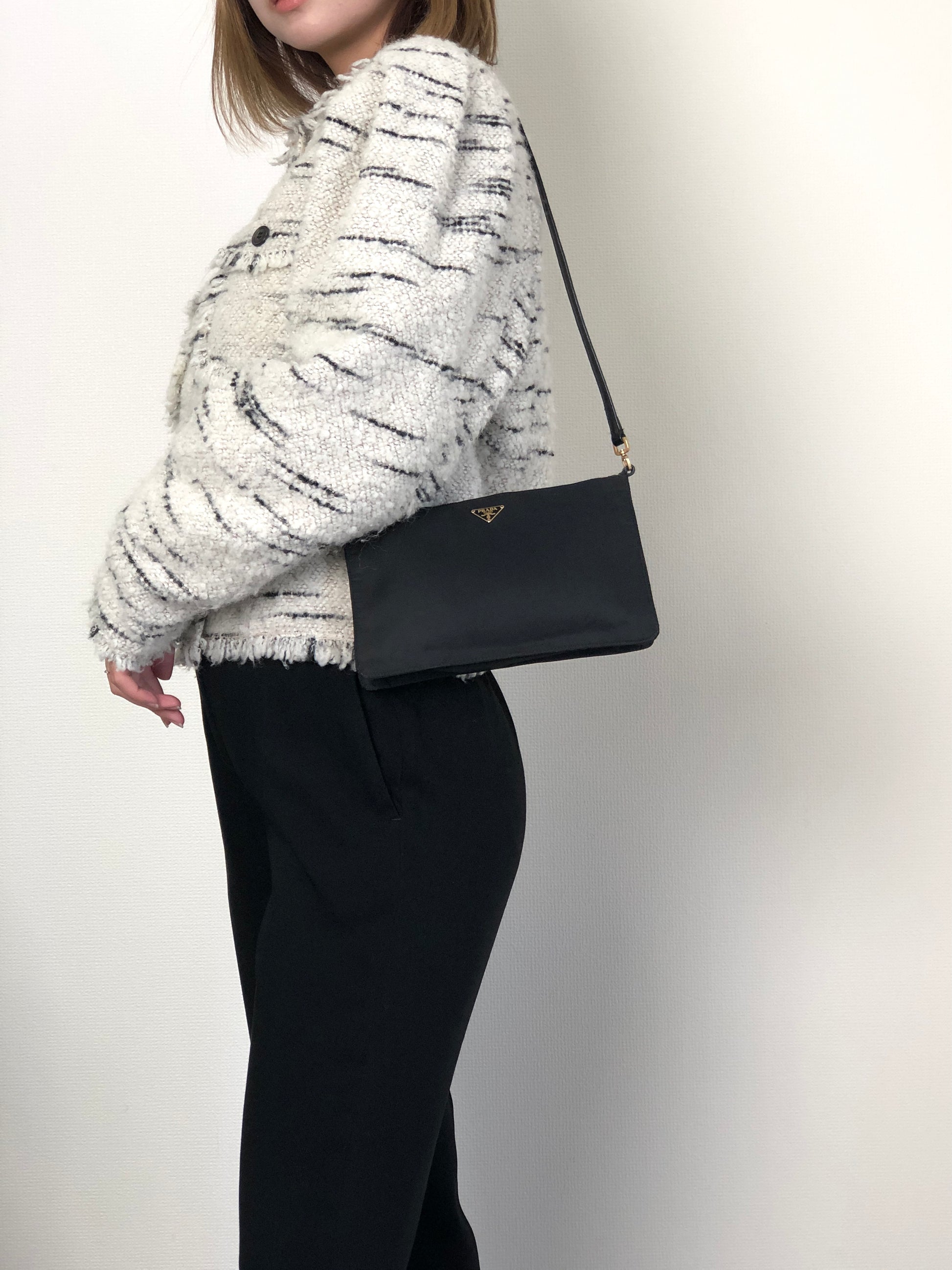 PRADA Tessuto Triangle Logo Shoulder bag Black Vintage 67ab6y