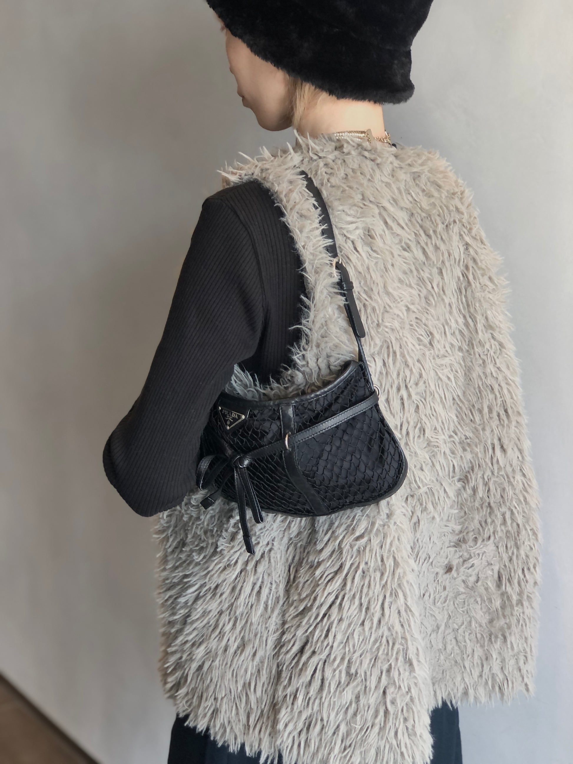 PRADA Tessuto Triangle Logo Shoulder bag Black Vintage 7hmnip