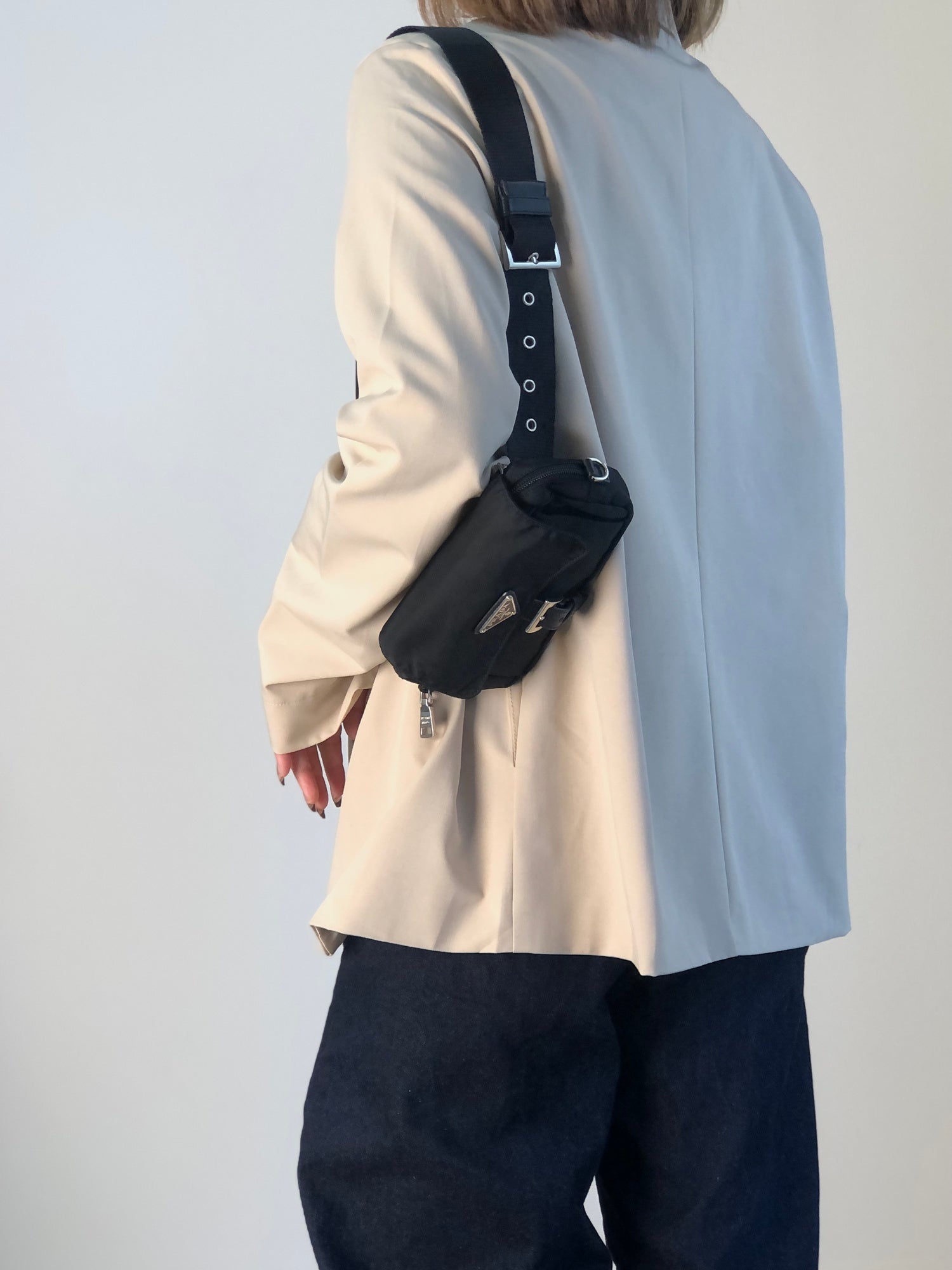 PRADA Tessuto Triangle Logo Shoulder bag Sling bag Black Vintage s8izt8