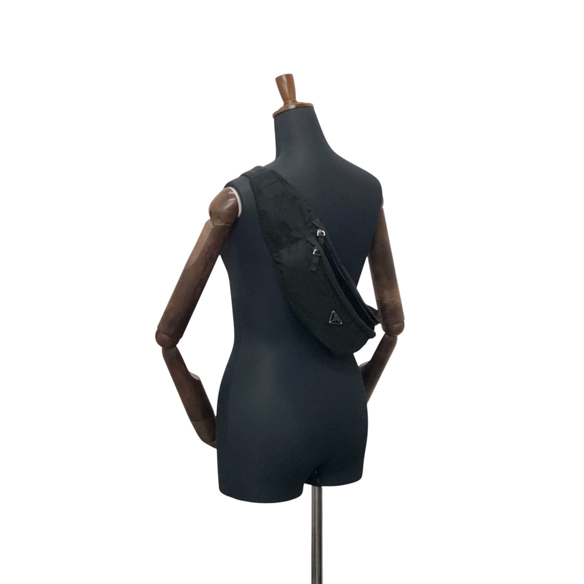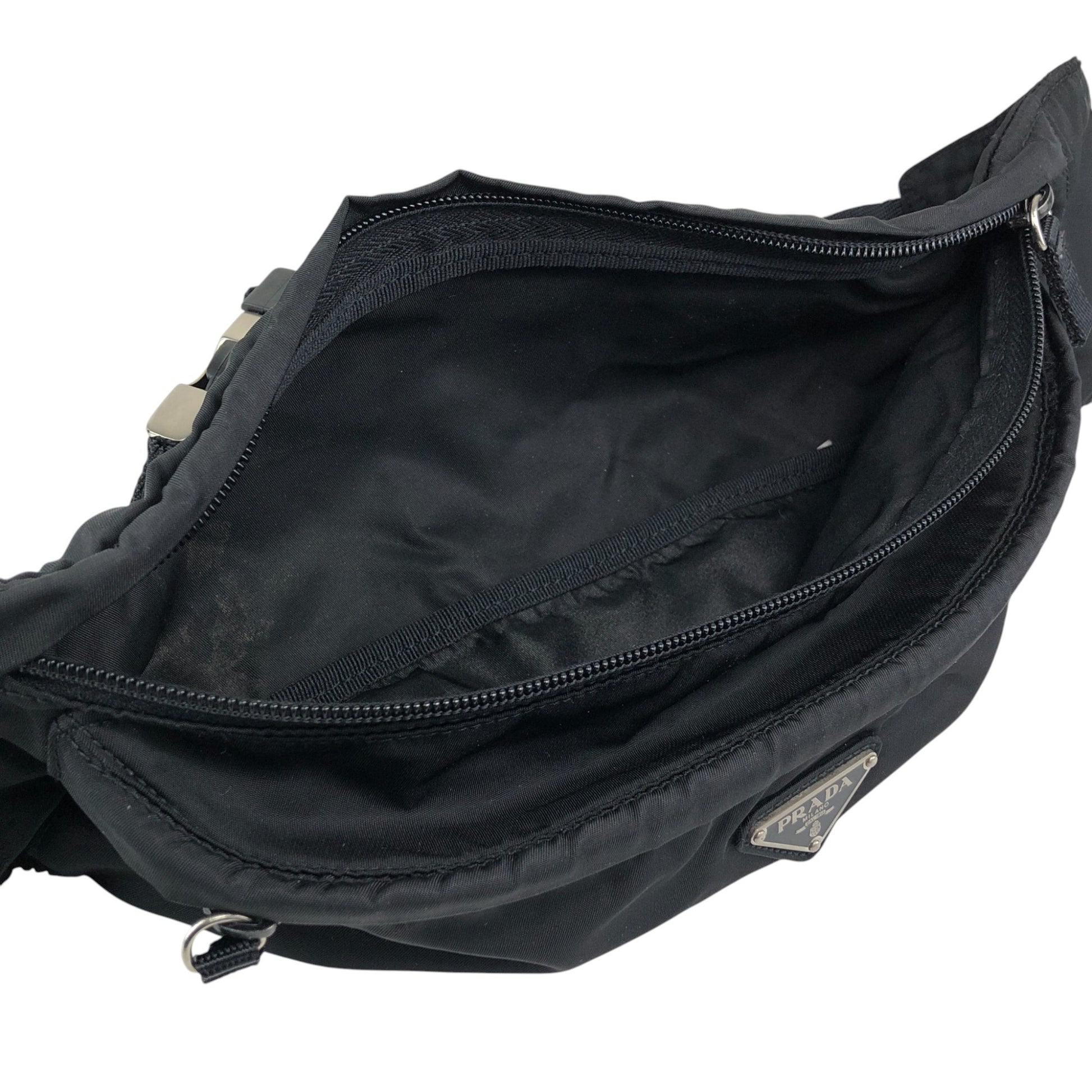 PRADA Tessuto Triangle Logo Sling bag Black Vintage n5nfph