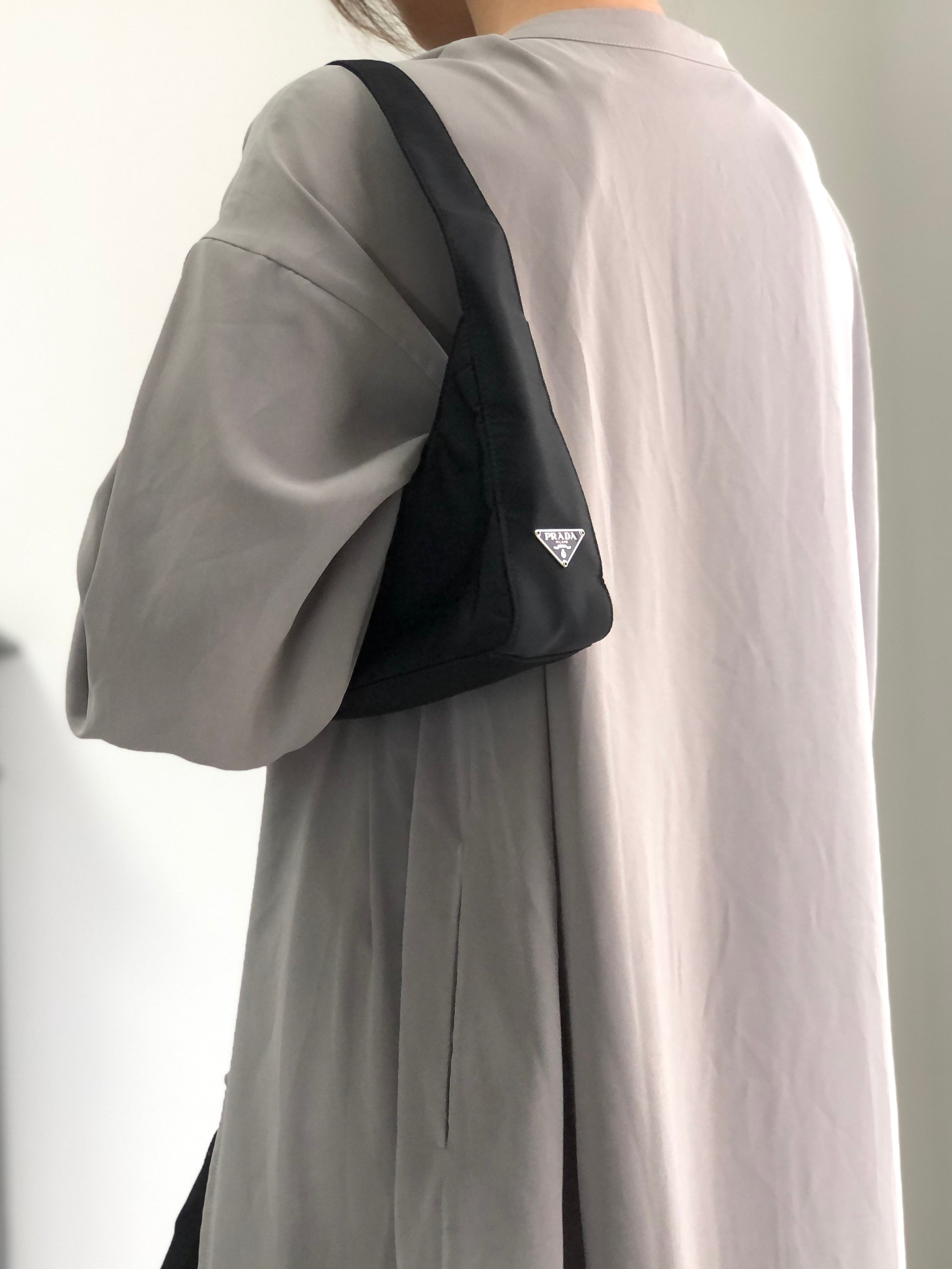 PRADA Tessuto Triangle Logo Small Handbag Black Vintage 5aczat