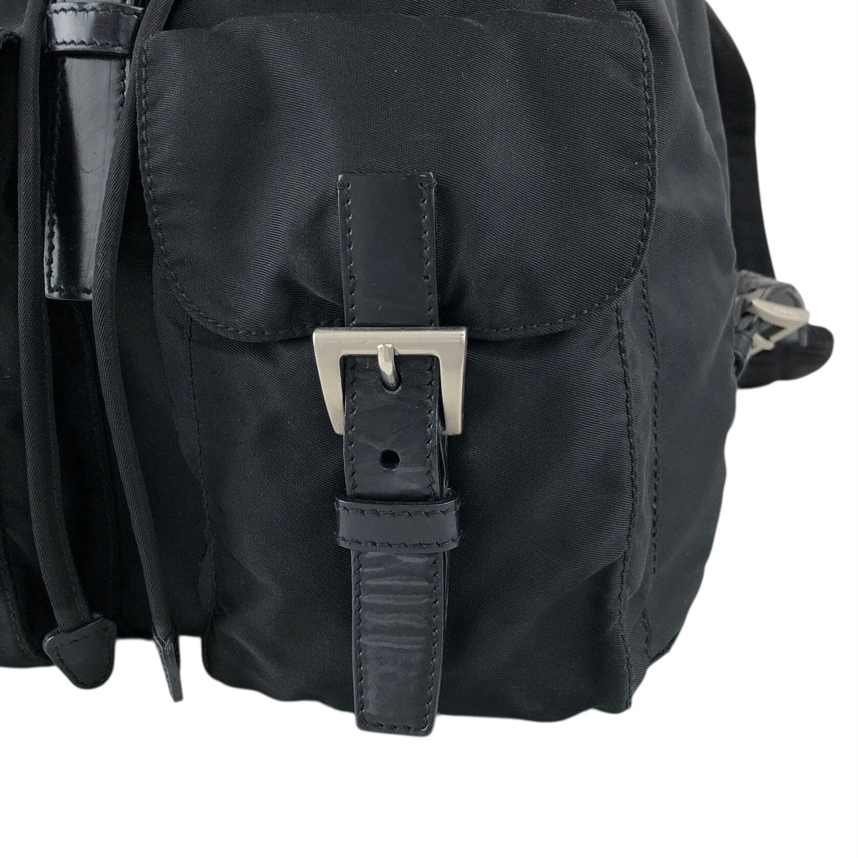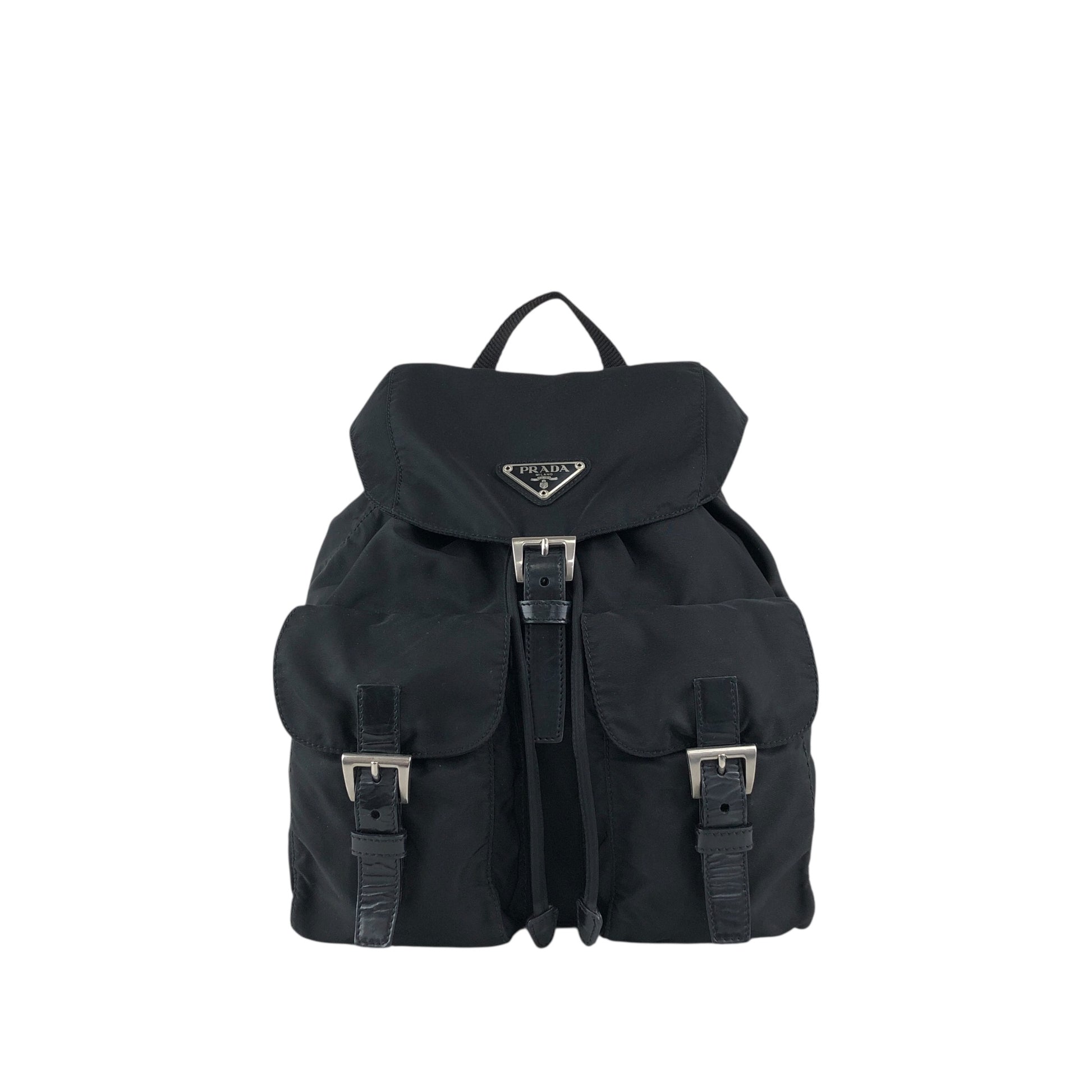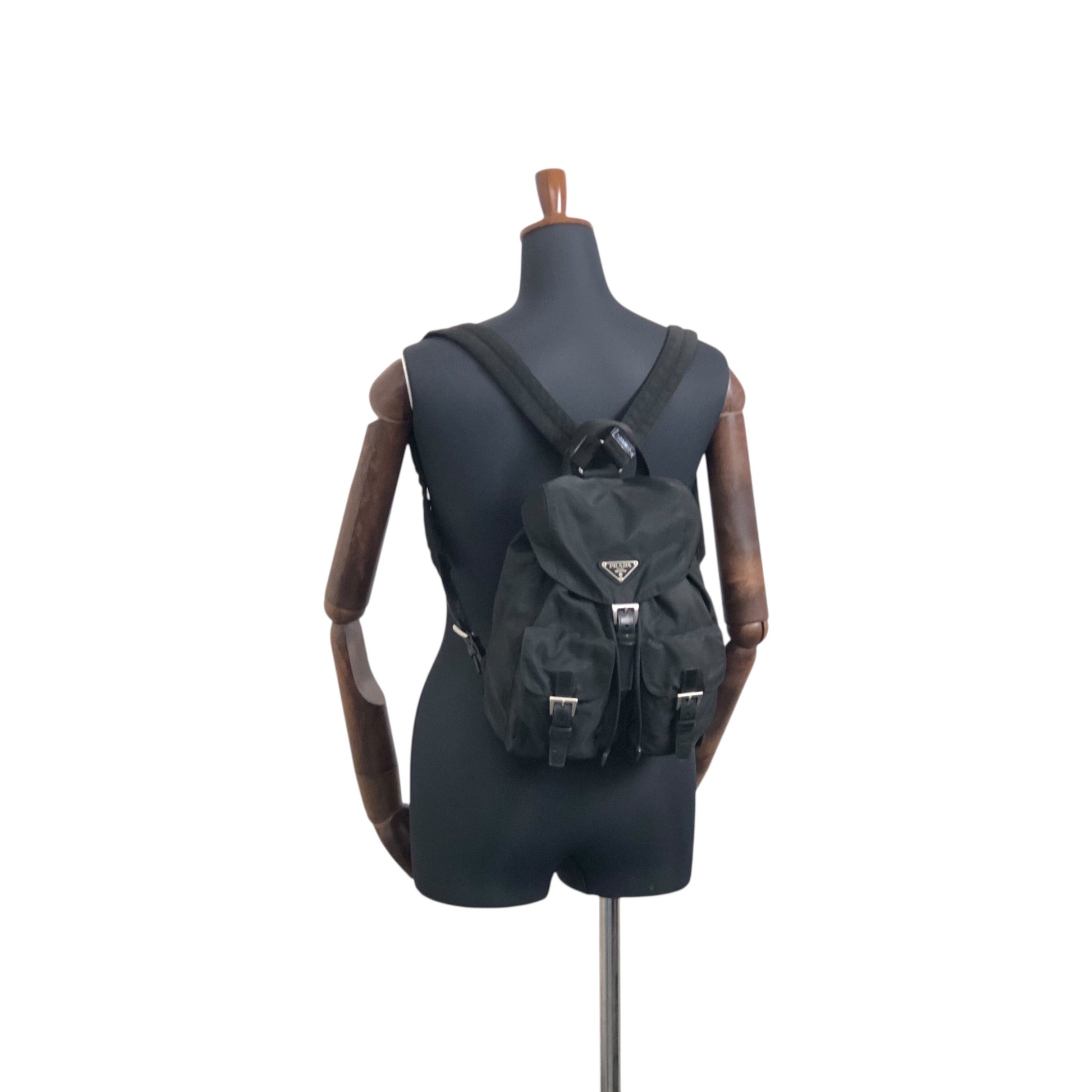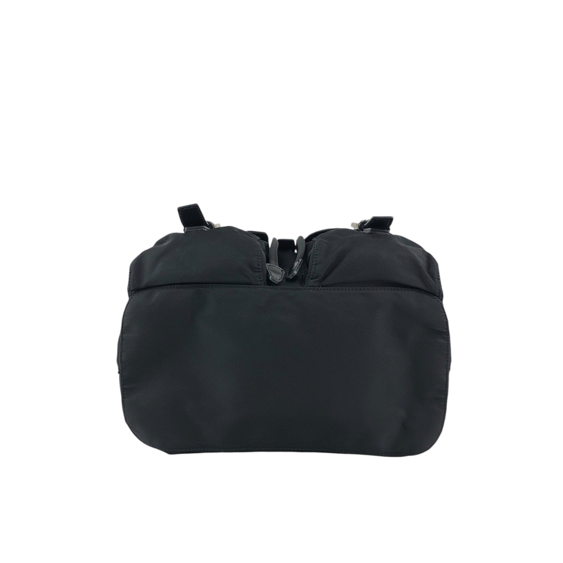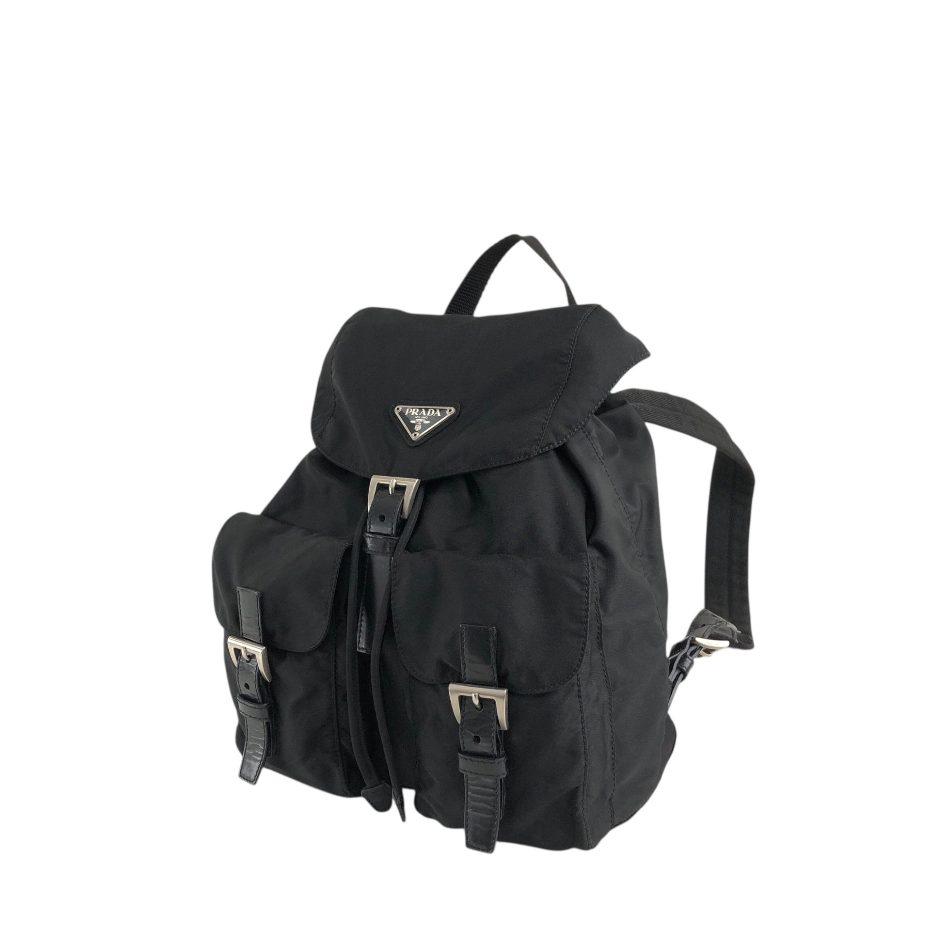 PRADA 三角形標誌雙口袋背包黑色復古 482mjk
