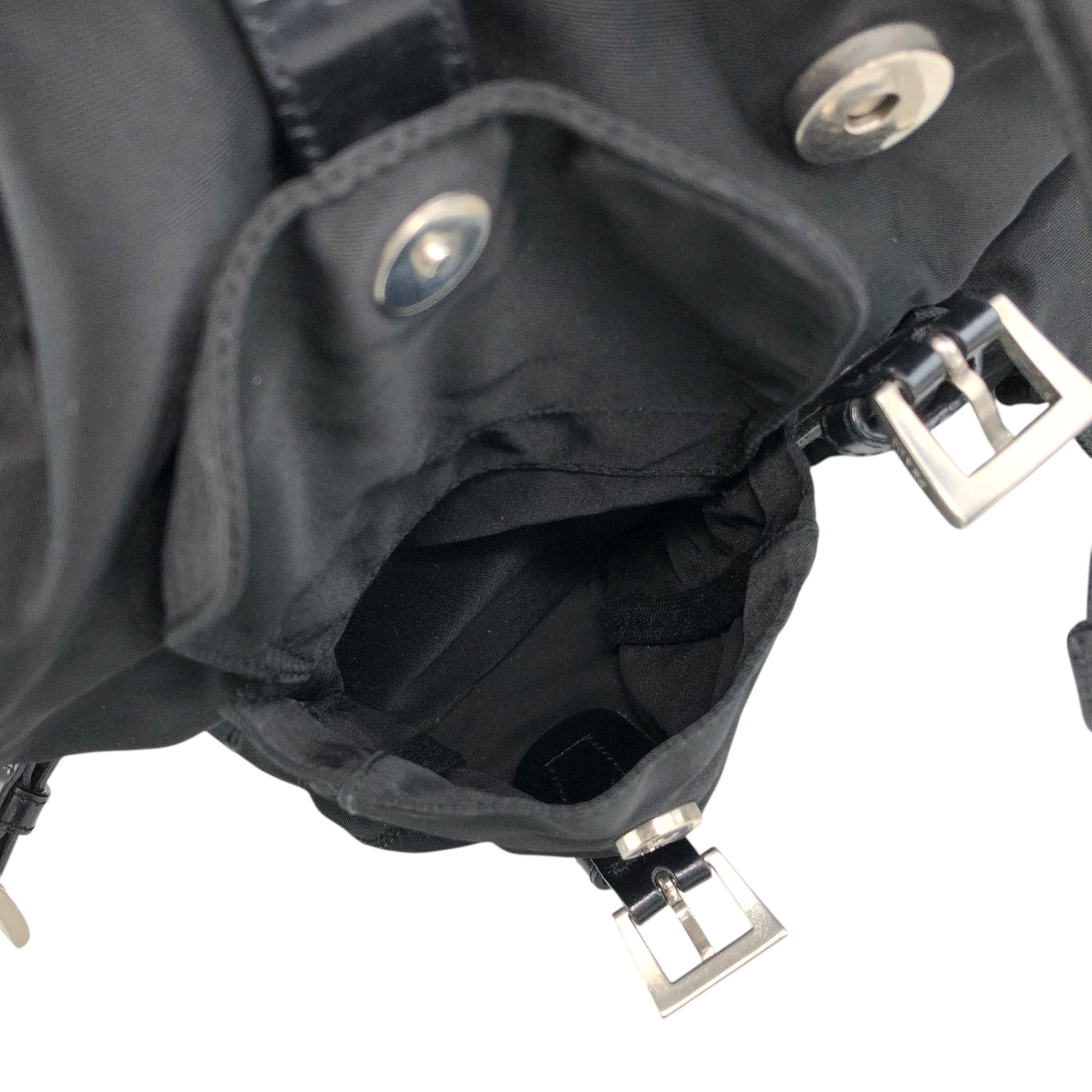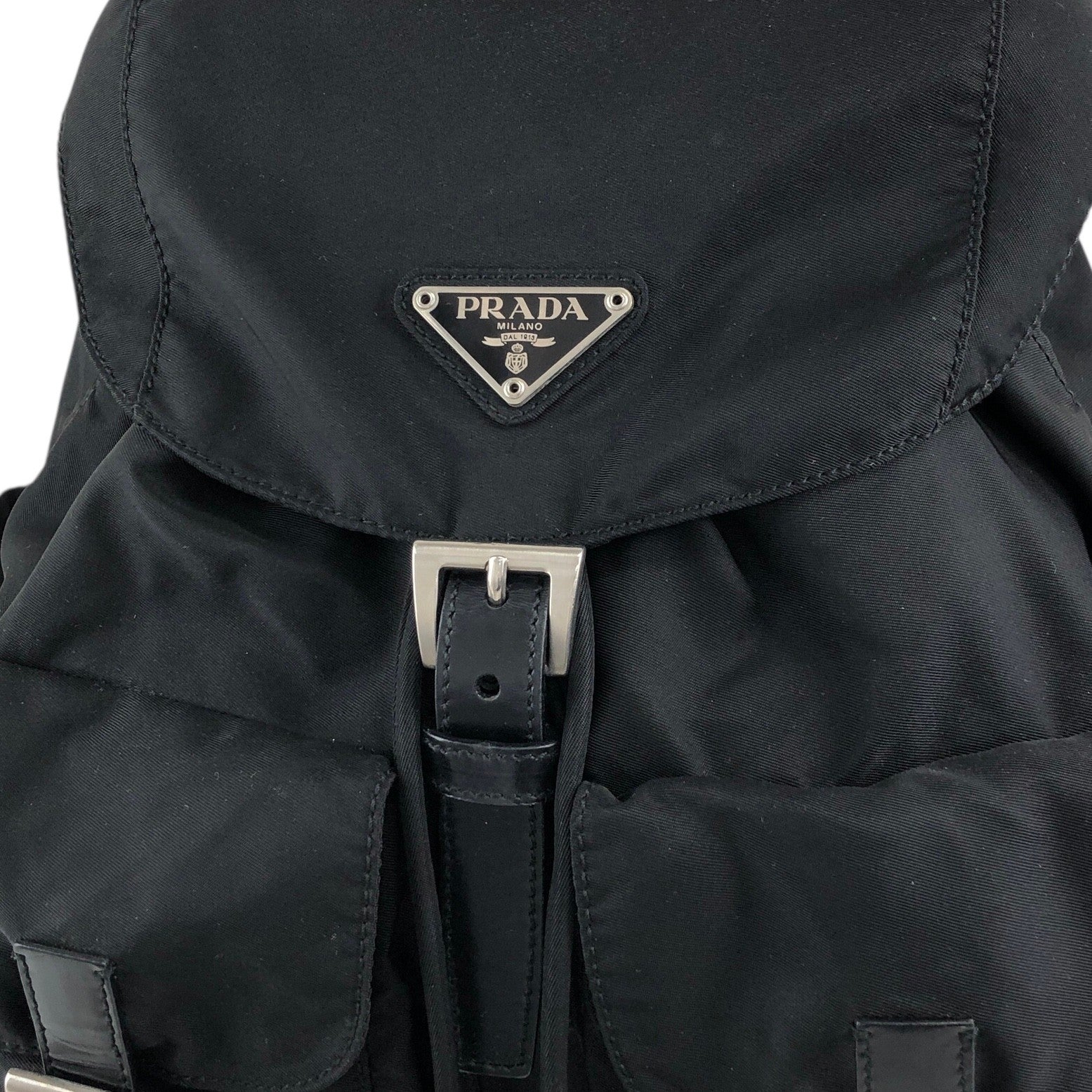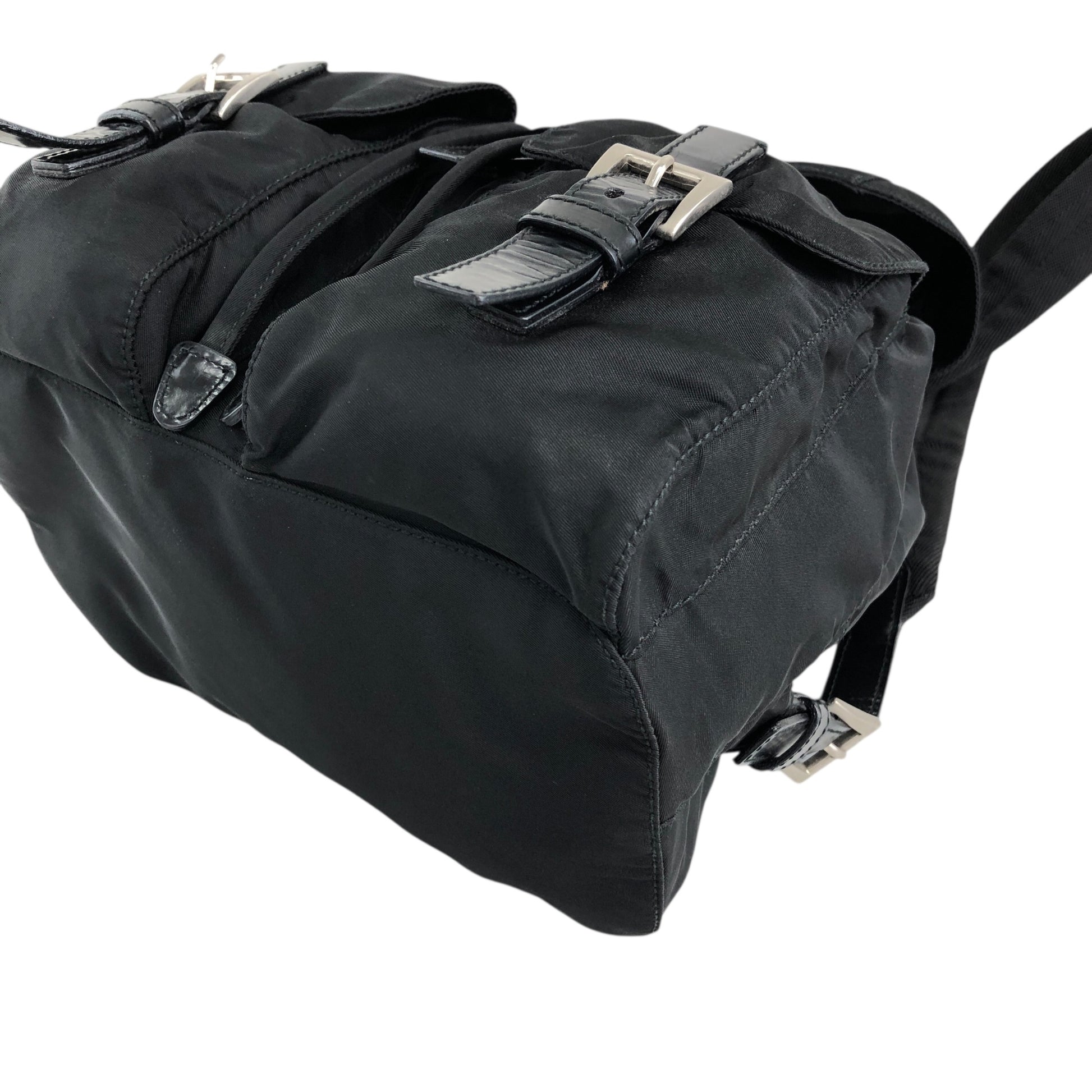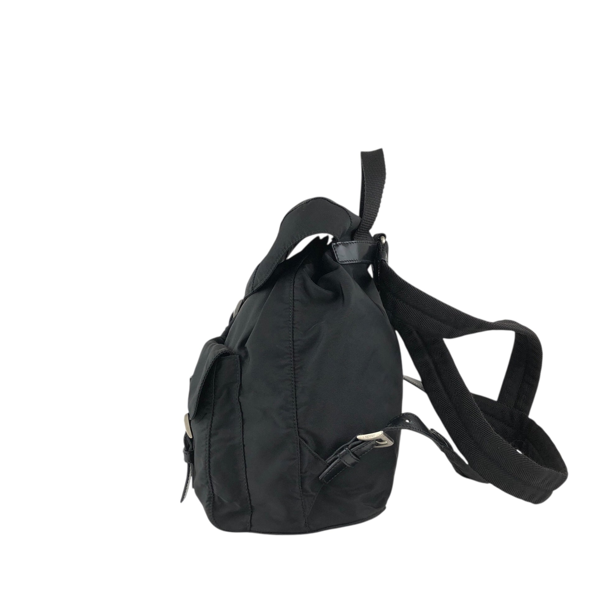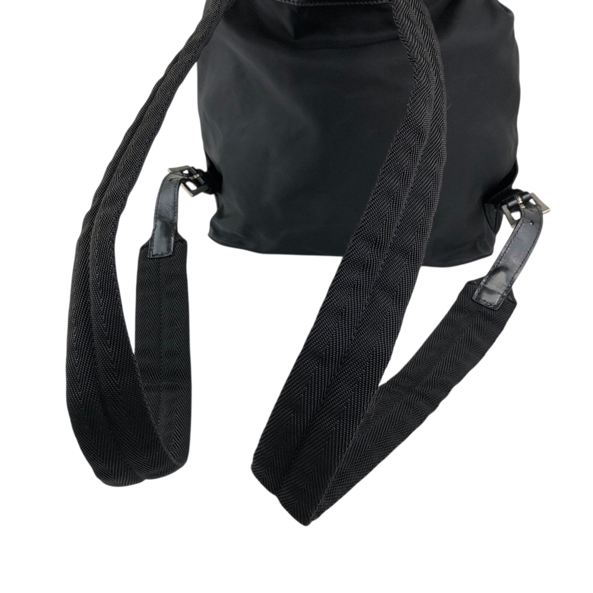 PRADA 三角形標誌雙口袋背包黑色復古 482mjk