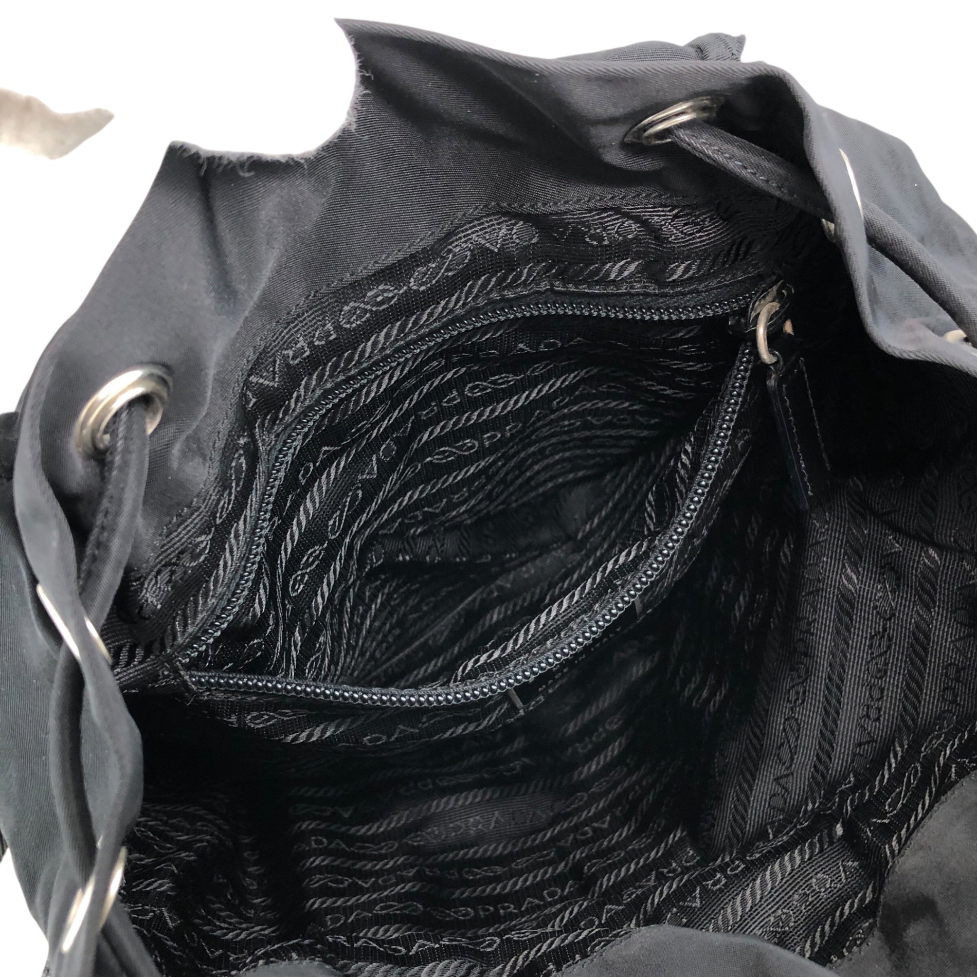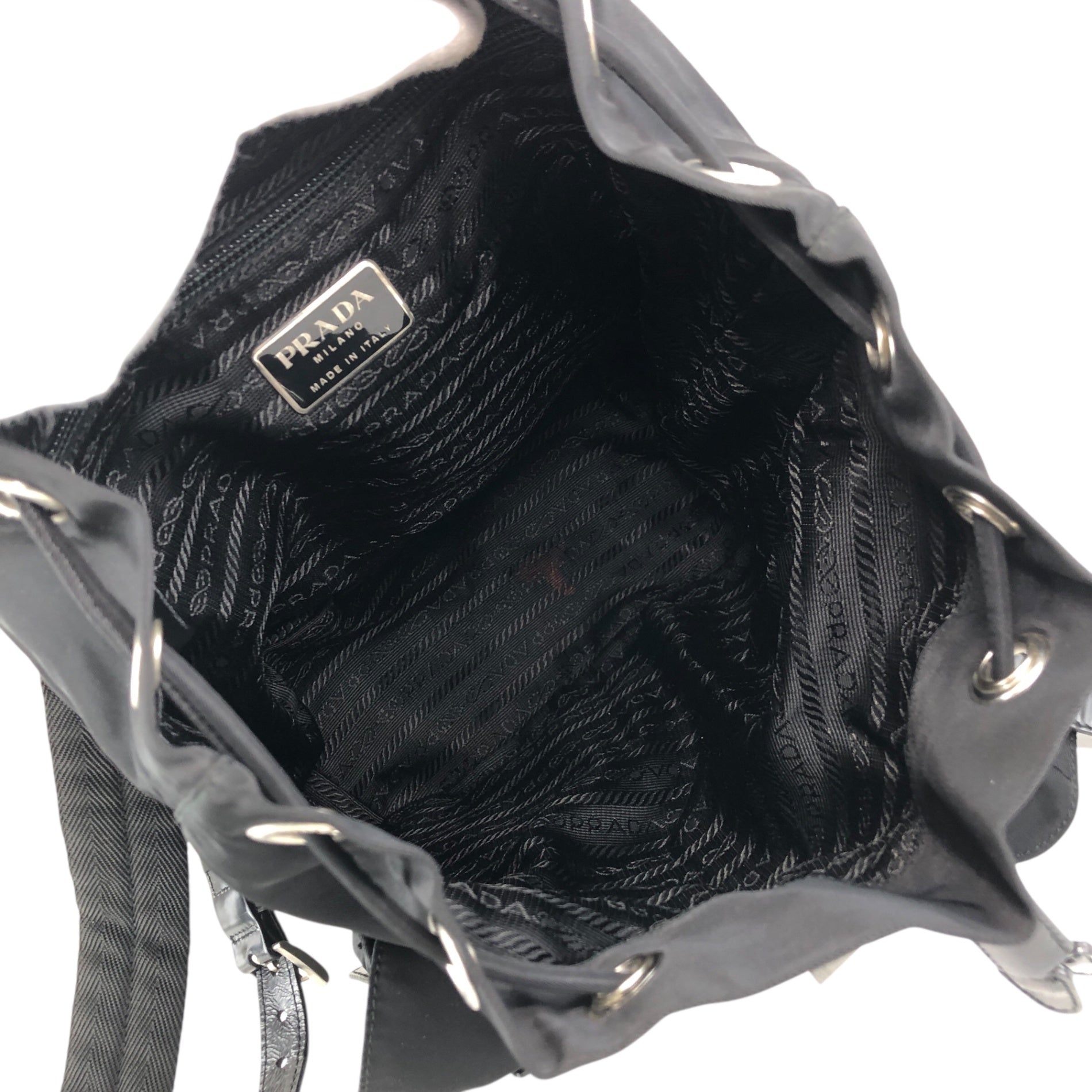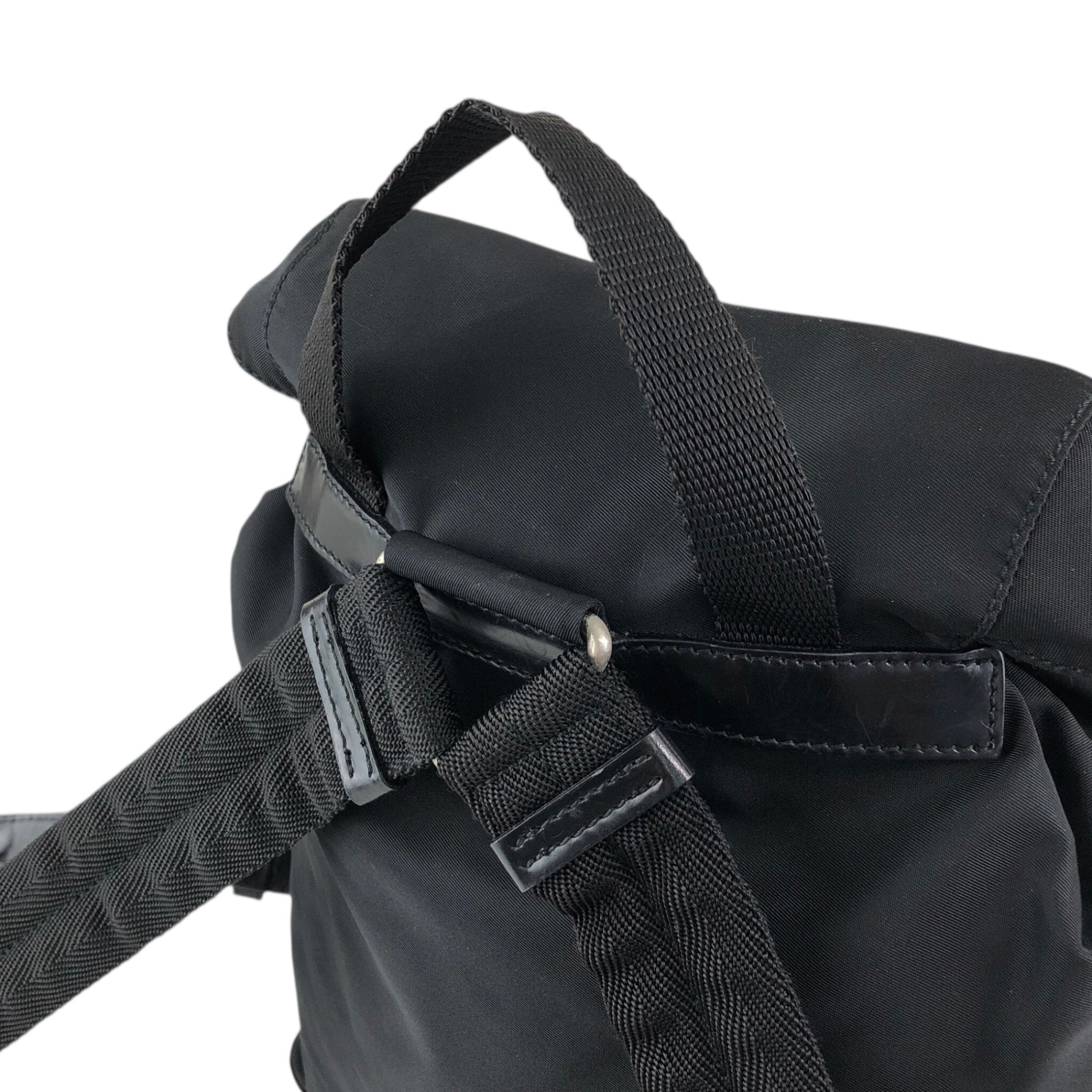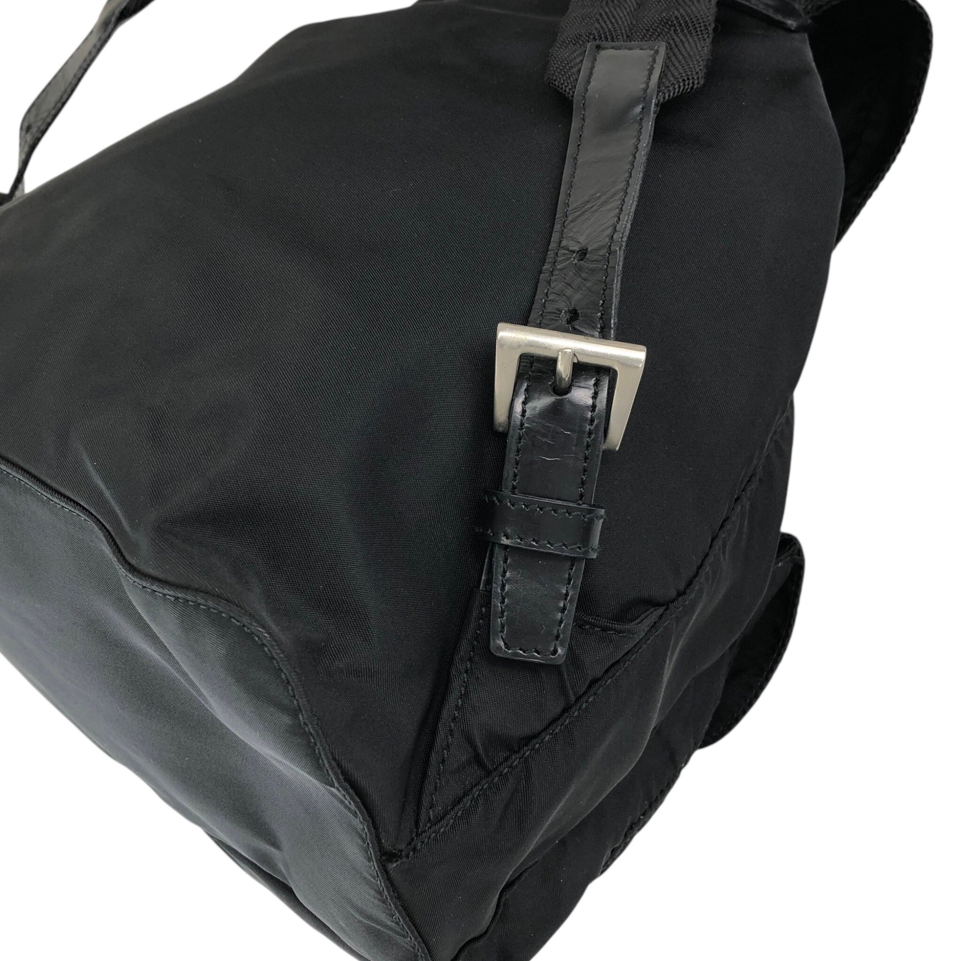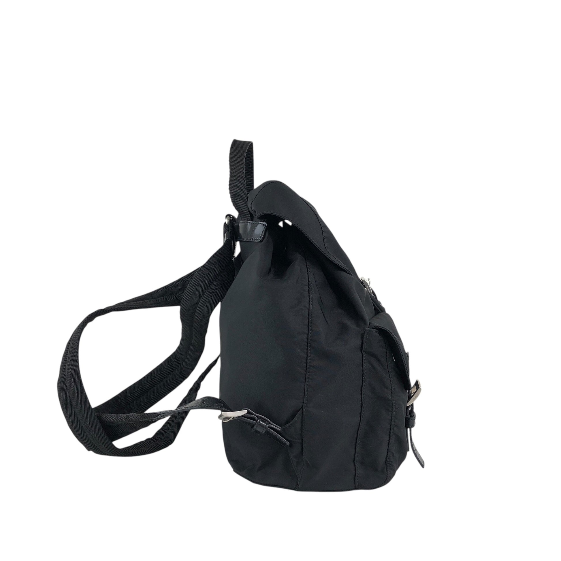PRADA 三角形標誌雙口袋背包黑色復古 482mjk