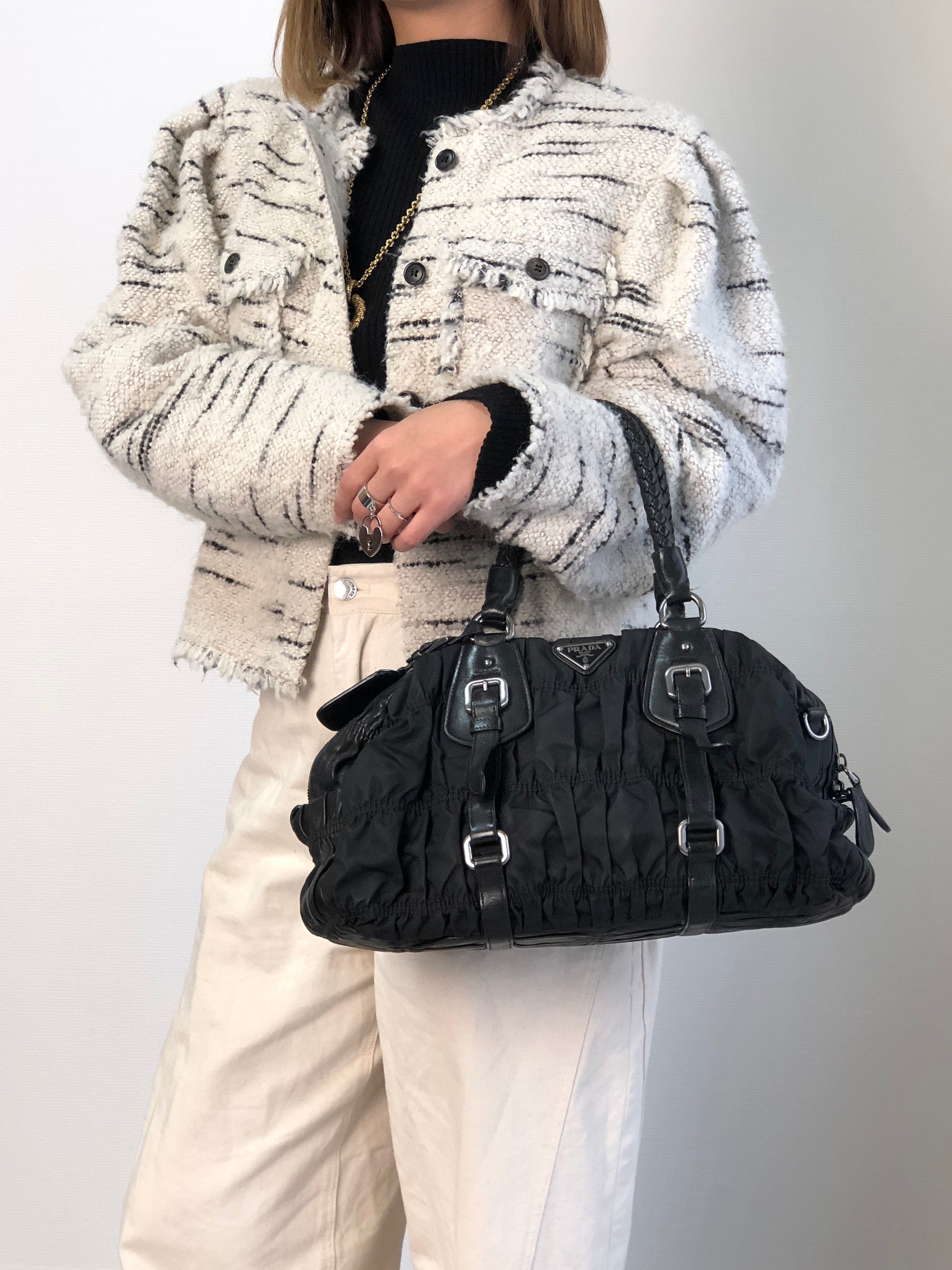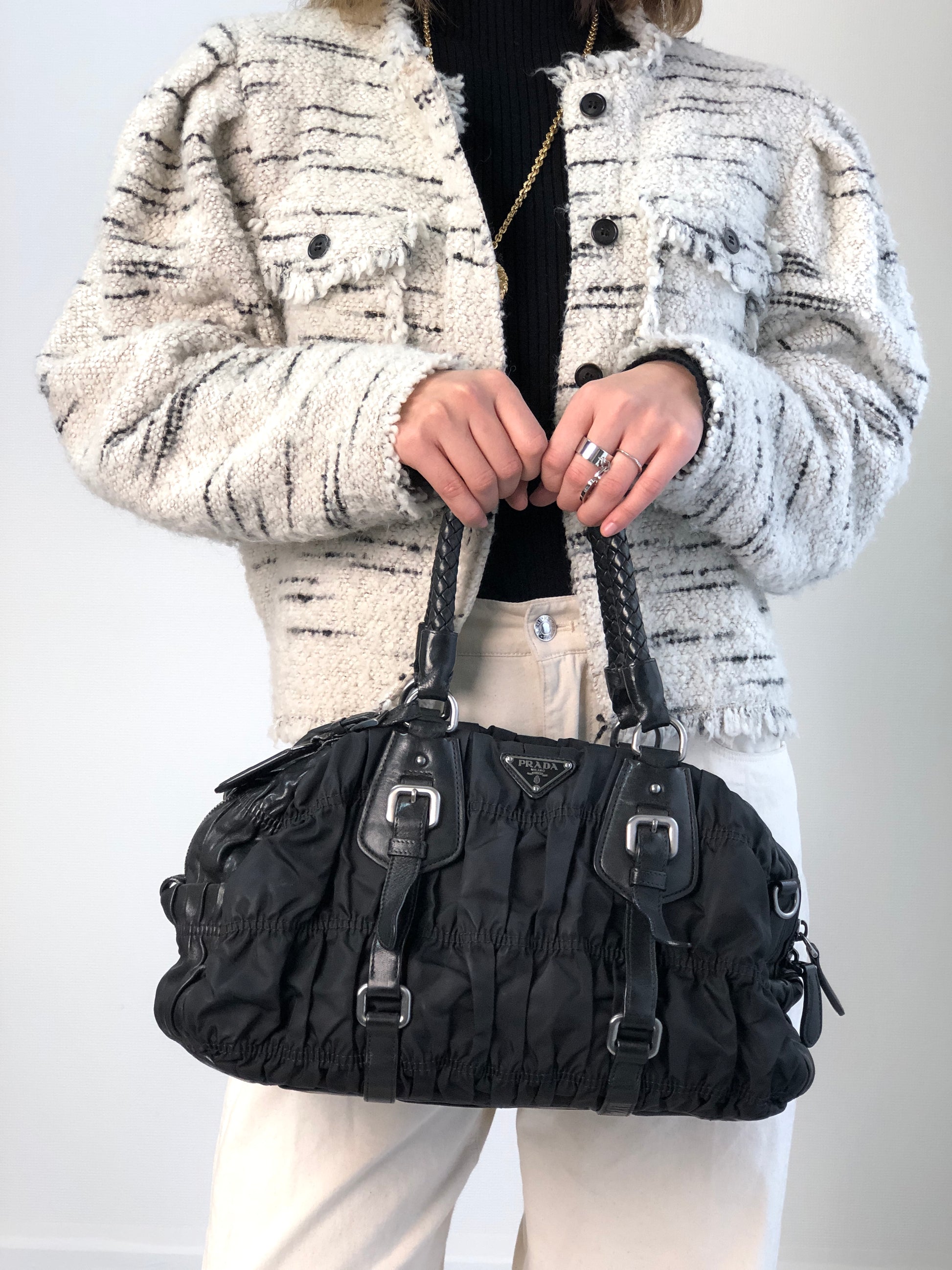 PRADA Triangle Logo Handbag Black Vintage g8wpjj