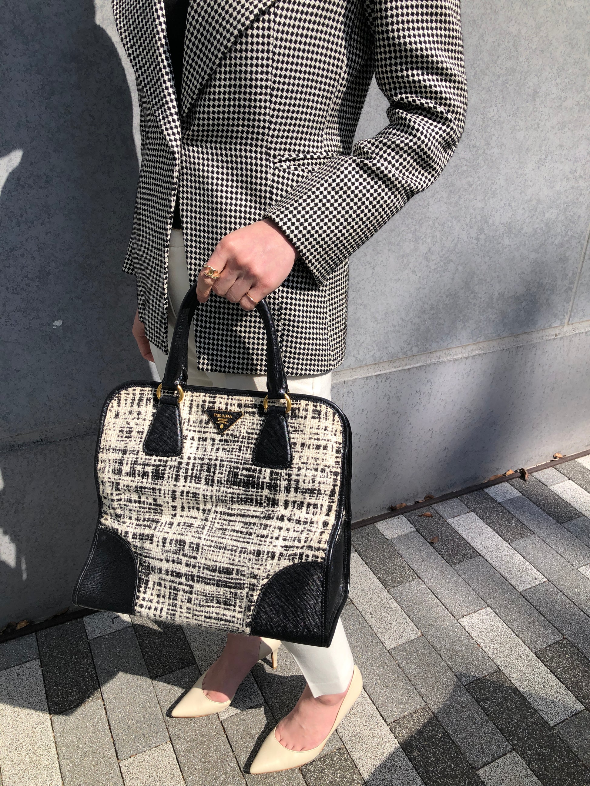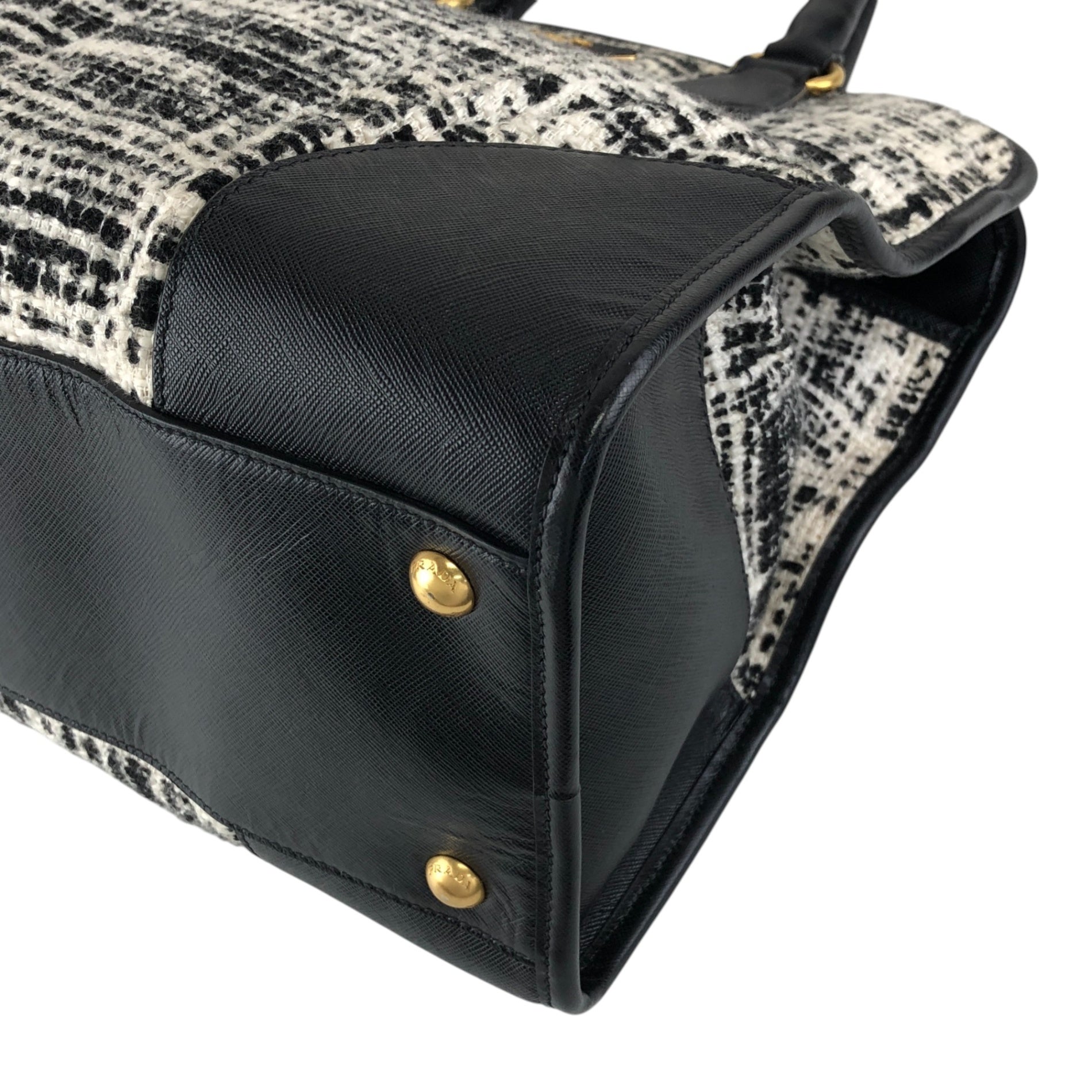PRADA Triangle Logo Handbag White×Black Vintage xpzwfz