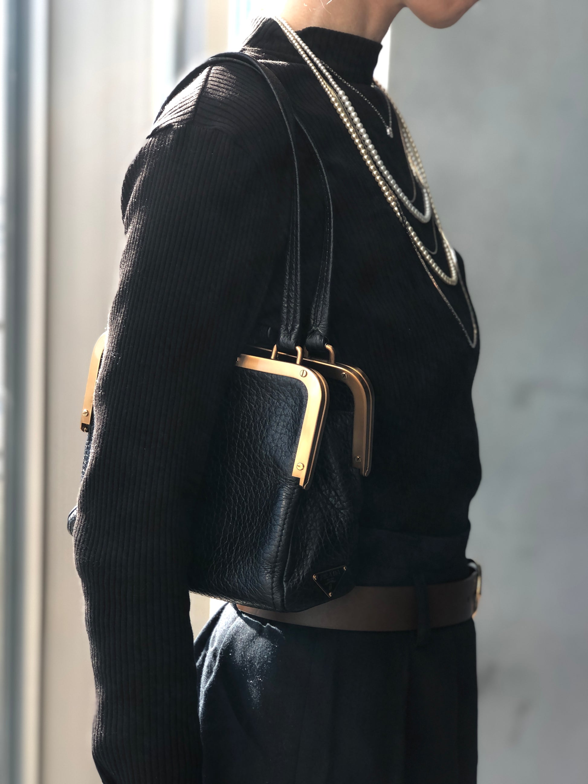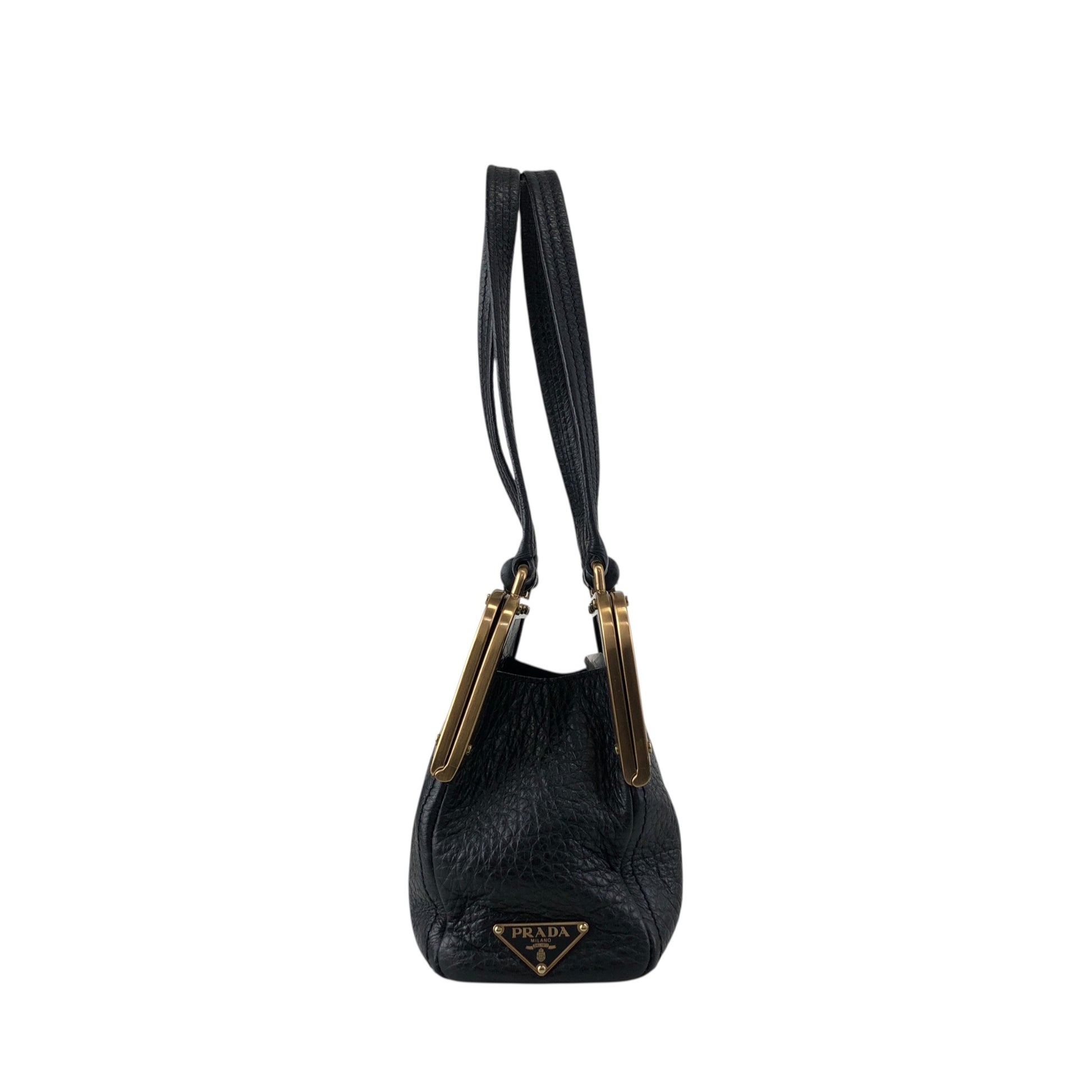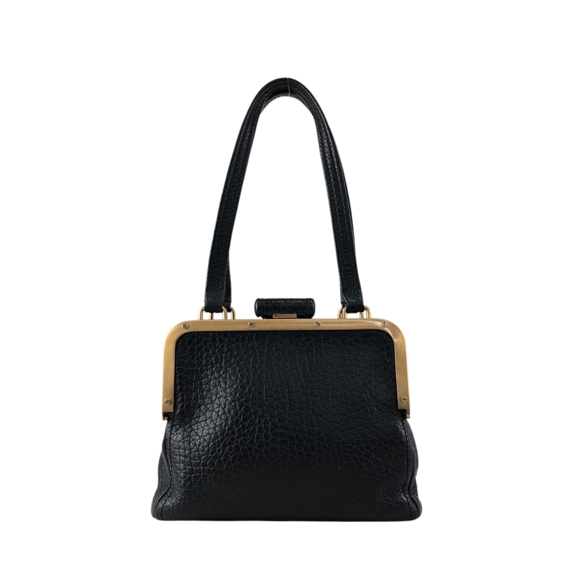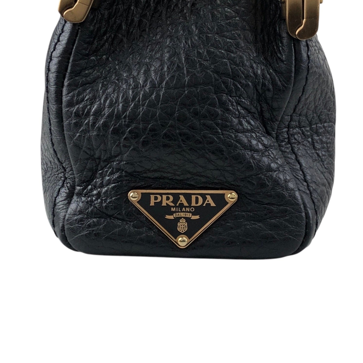 PRADA Triangle Logo Metal Closure Handbag Black Vintage epwvbd