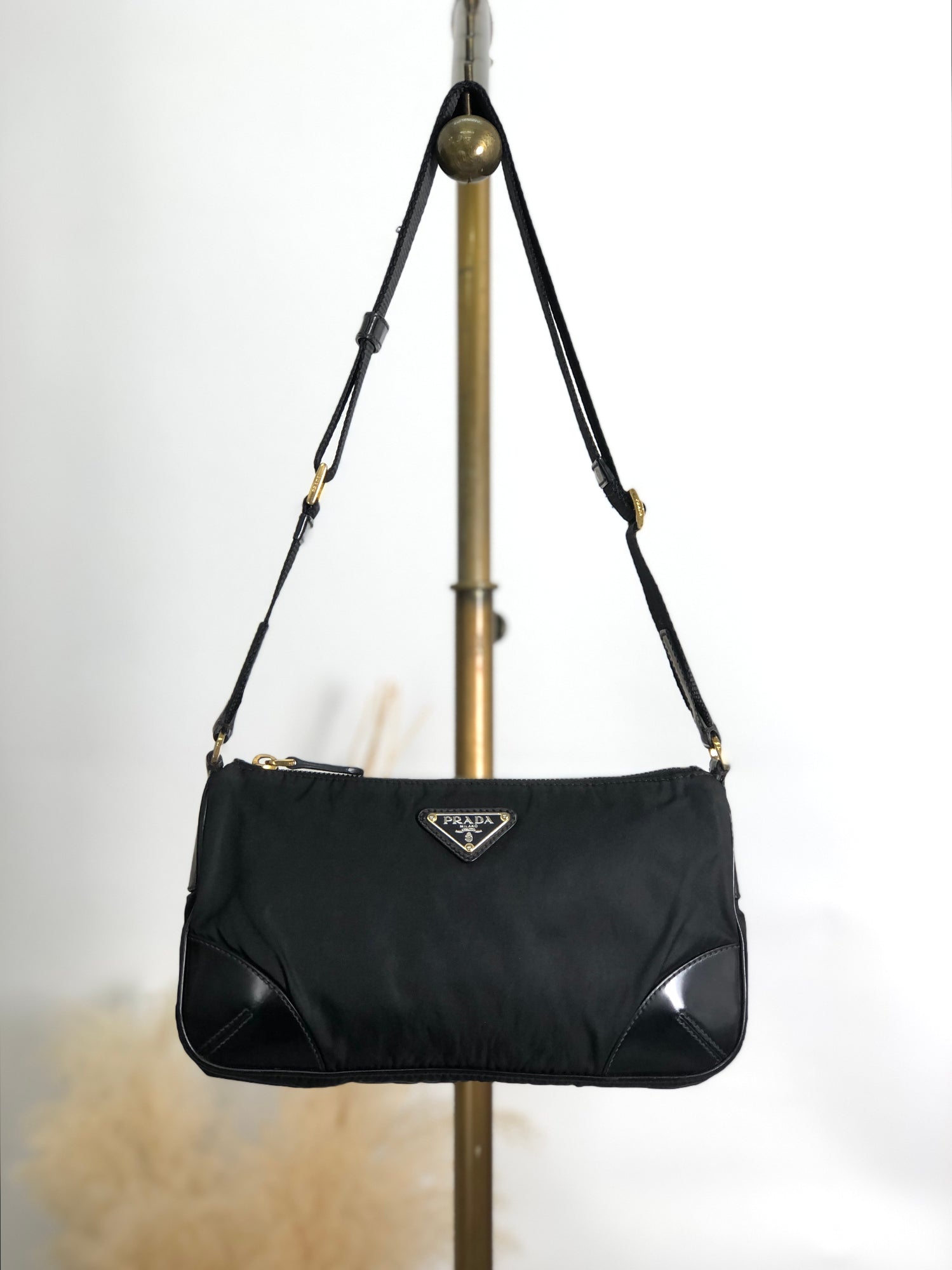 PRADA 三角形標誌單肩包 黑色 復古 st38ni