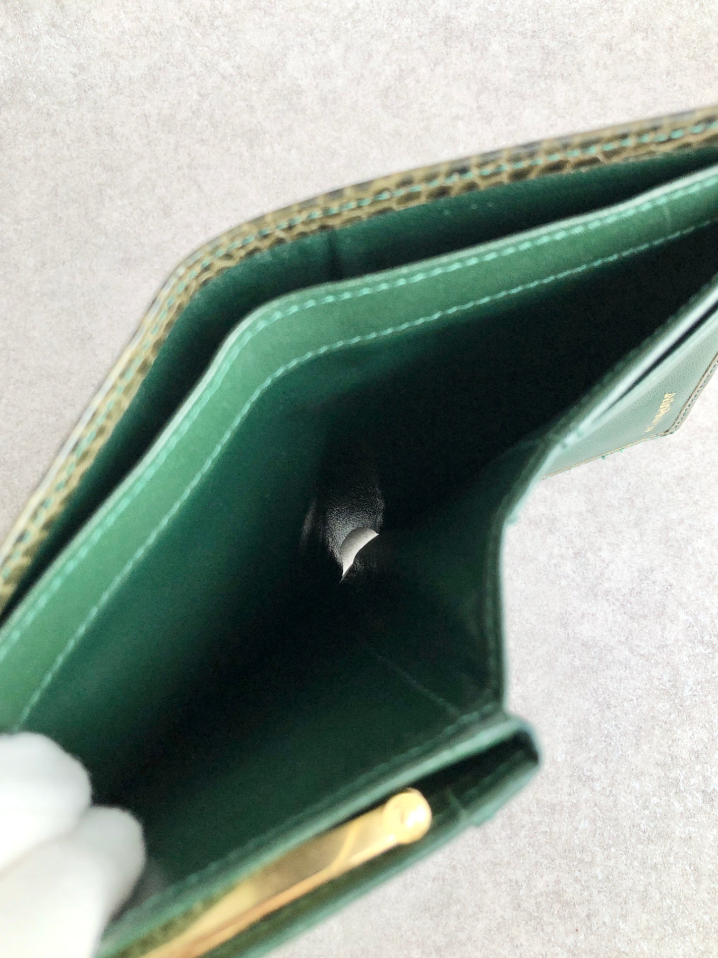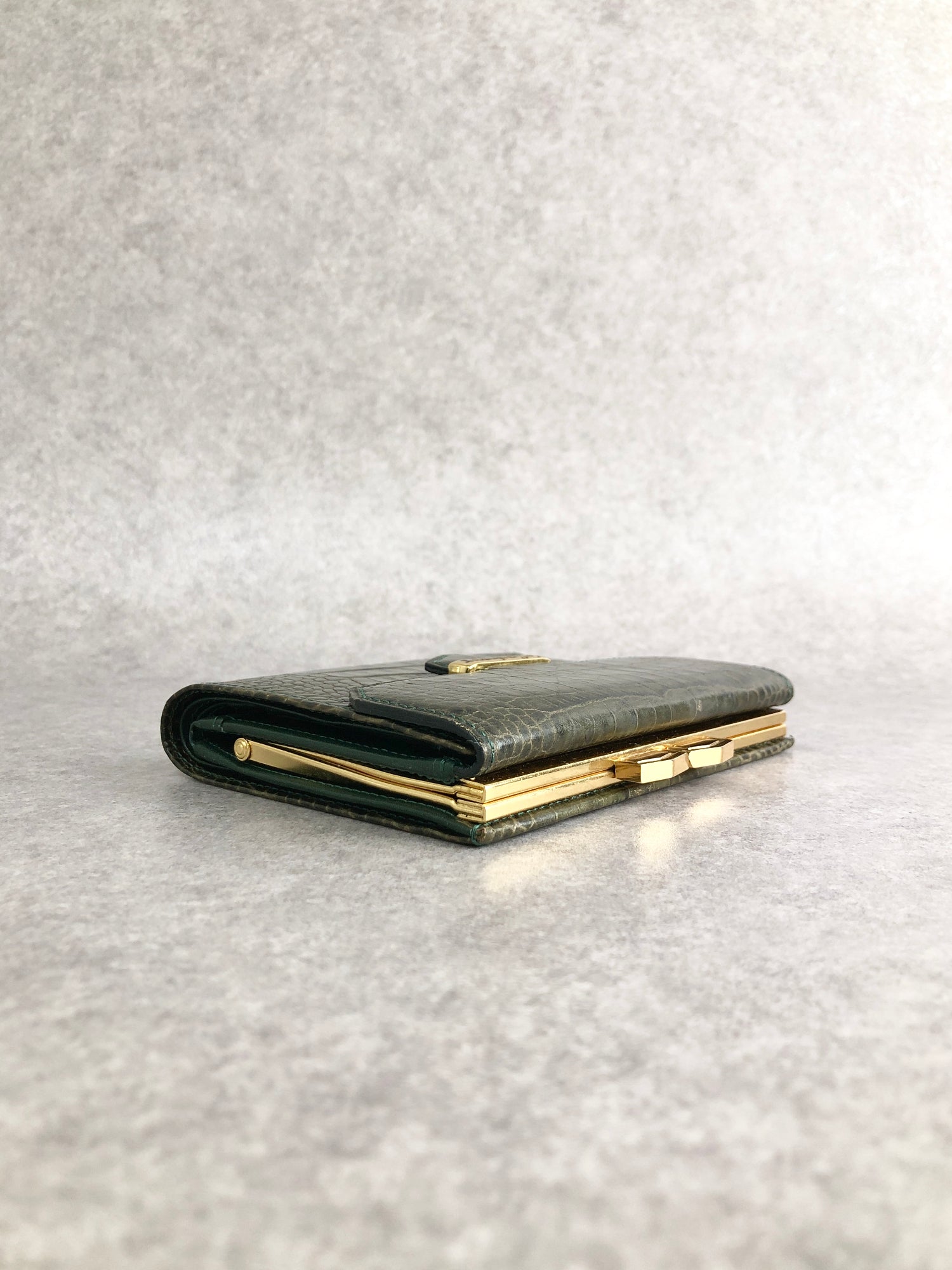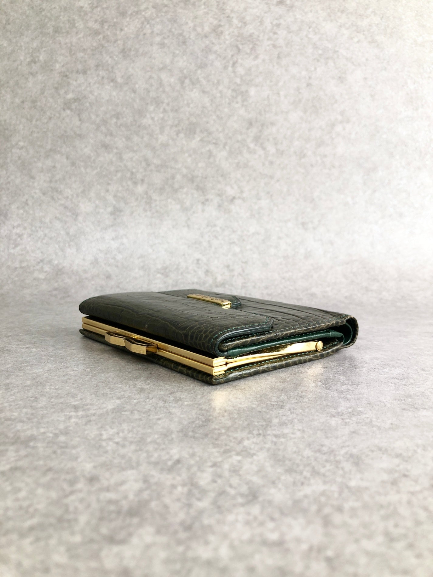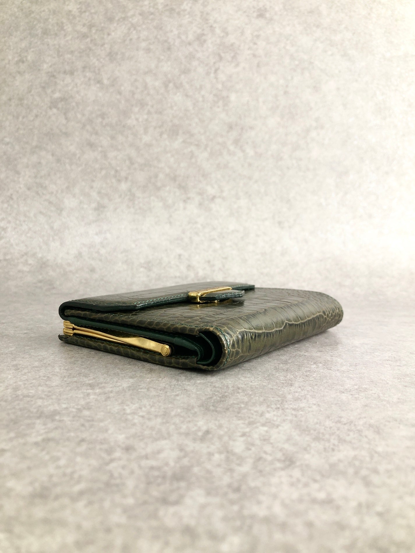 Yves Saint Laurent 金屬扣環折疊錢包 綠色復古 pk8u8c
