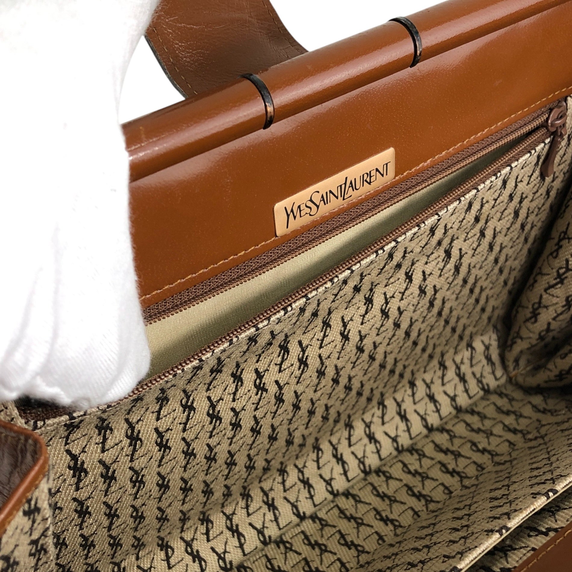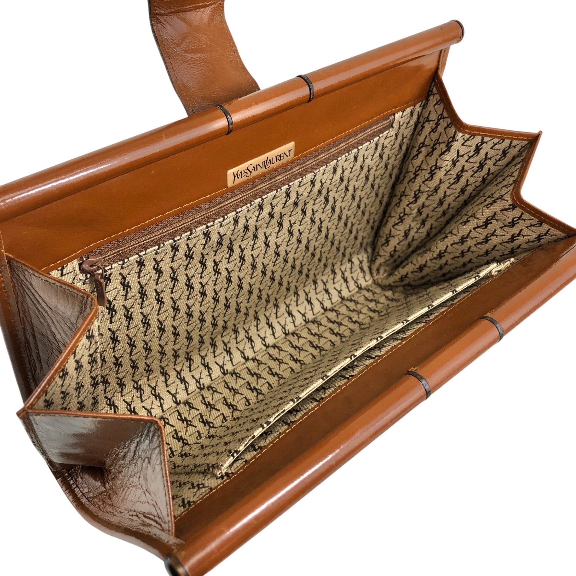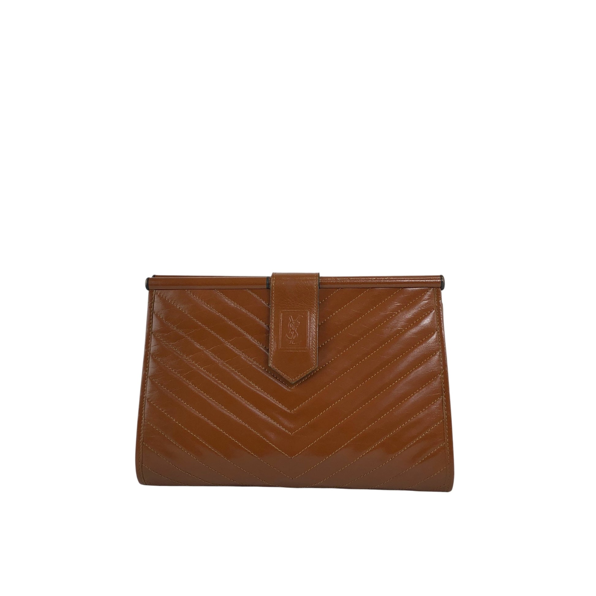 Yves Saint Laurent YSL Logo Cassandra Bias Stitch Clutch bag Brown Vintage i6mndi
